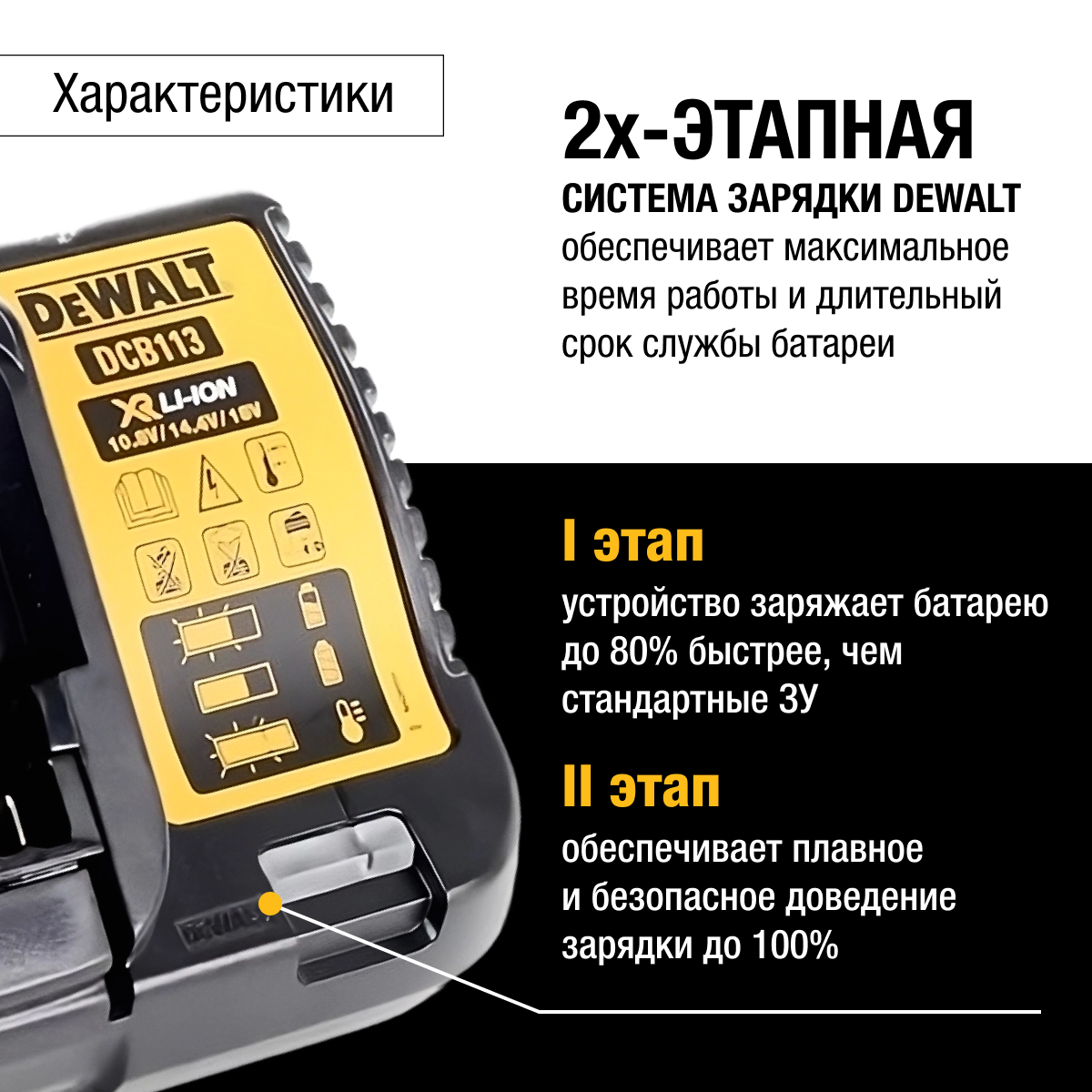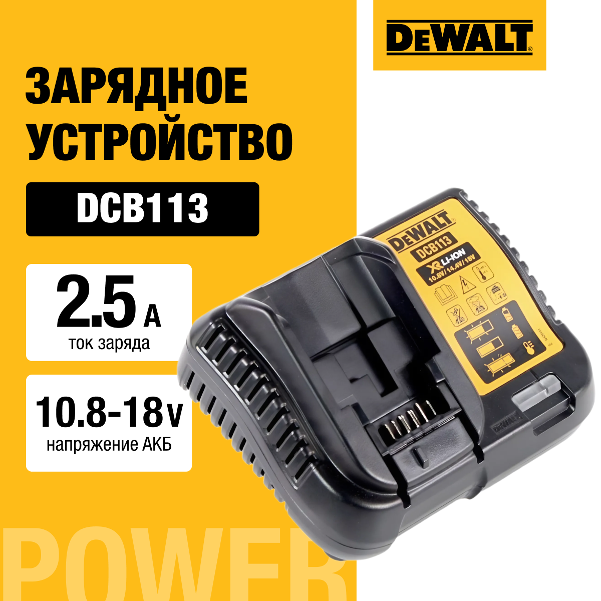 Зарядное устройство DEWALT, 10.8-18 В, 2.5 A, DCB113 информация: