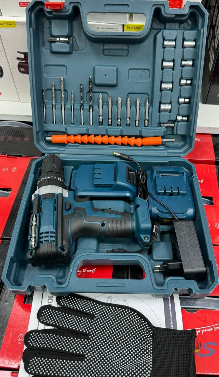 Отзывы на Шуруповерт аккумуляторный, строительный, дрель-шуруповерт, 2 АКБ, набор инструментов в кейсе + перчатки