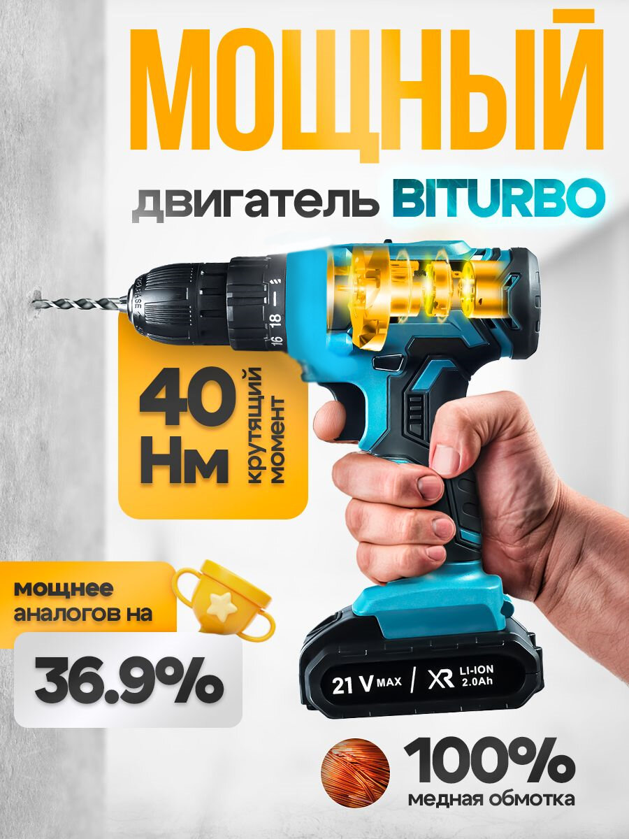 Бесщеточный Шуруповерт 18v и набор насадок 24 предмета