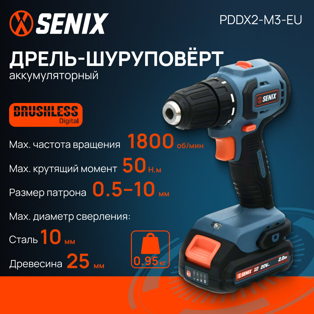 Дрель-шуруповерт SENIX PDDX2-M3-EU (2АКБ 2Ач+ЗУ) информация: