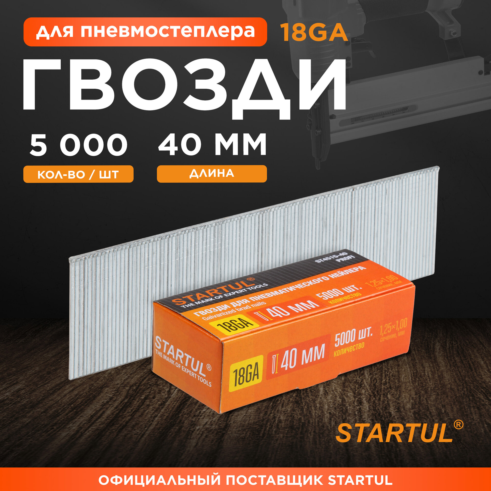 Гвозди для пневмопистолета нейлера тип 18GA 40мм (5000шт) STARTUL PROFI (сечение 1,25х1,00мм) информация: