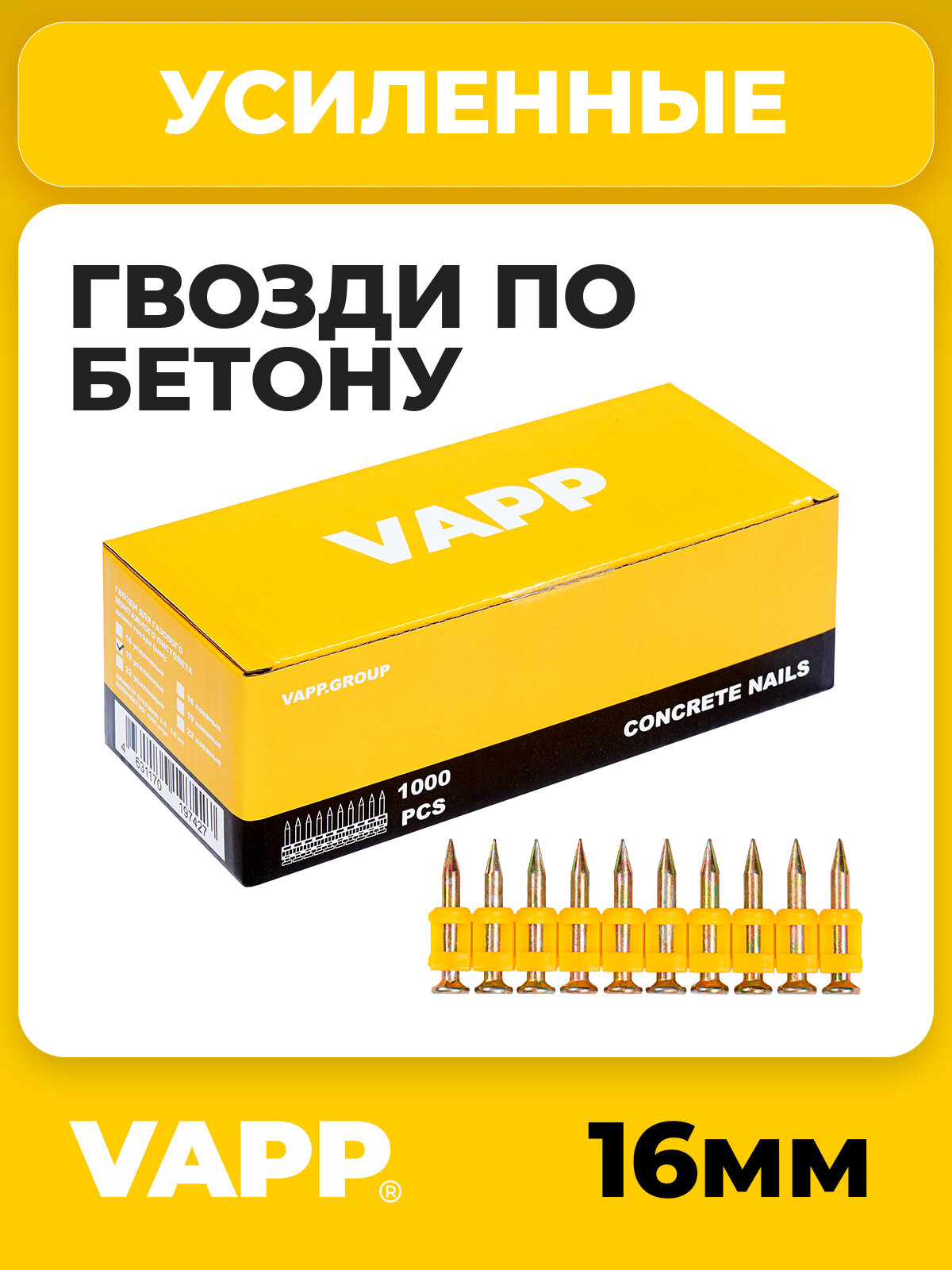 Гвозди усиленные VAPP 3*16 мм для газового монтажного пистолета, 1000 шт. информация:
