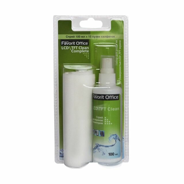 Отзывы на Набор чистящих салфеток и спрея для всех видов мониторов/Набор 2-в-1, 100 мл Favorit Office F740023 для любых ЖК-экранов