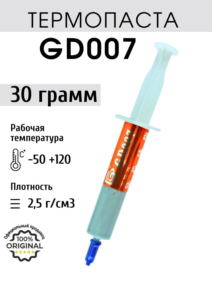 Термопаста GD007 в шприце 30 грамм для процессора ноутбука компьютера, теплопроводность 6,8 Вт/мК информация:
