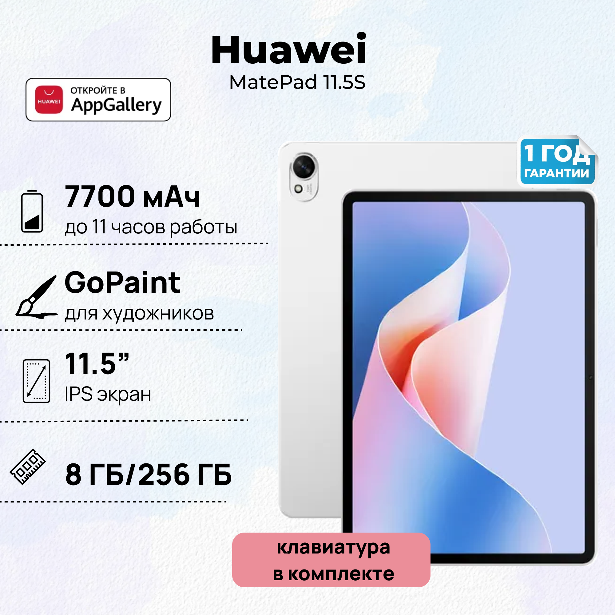 Планшет HUAWEI MatePad 11.5S 8/256GB WiFi+клавиатура (53014AWW), Мерцающий серебристый информация: