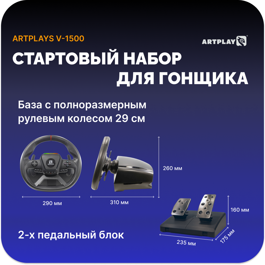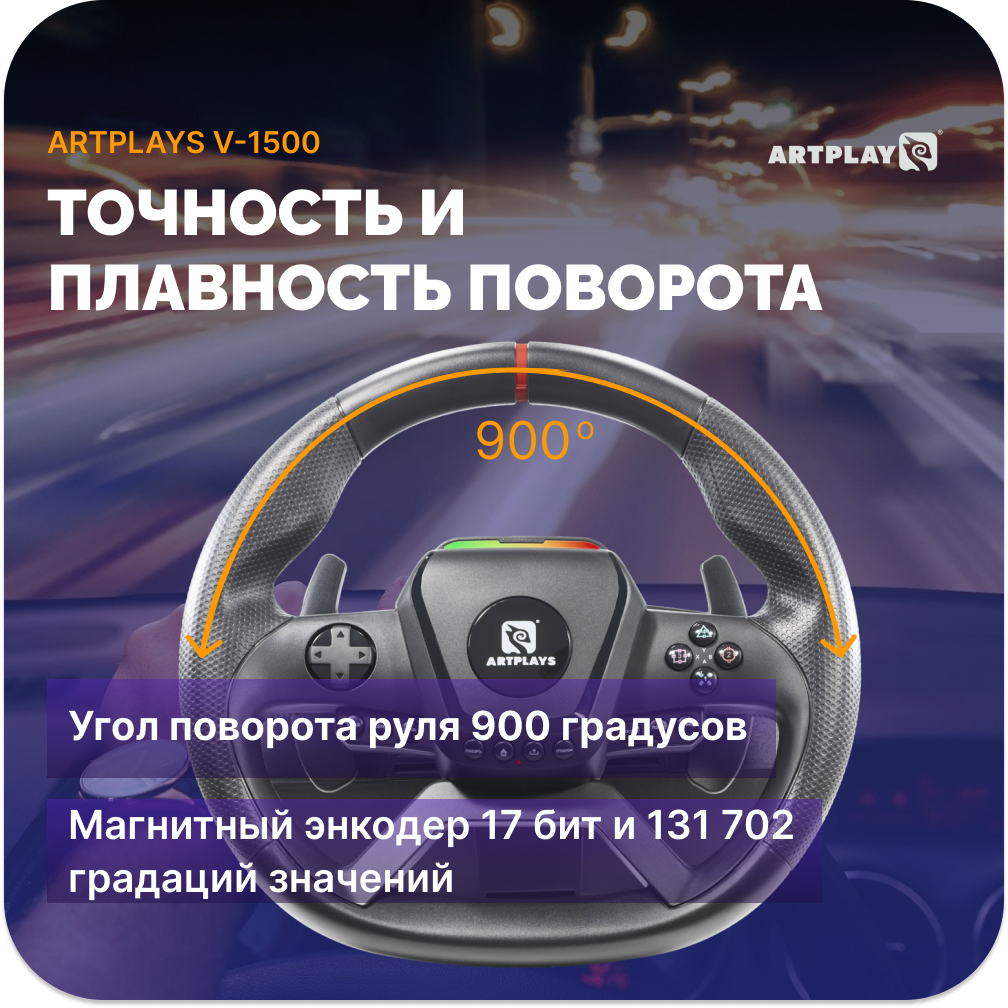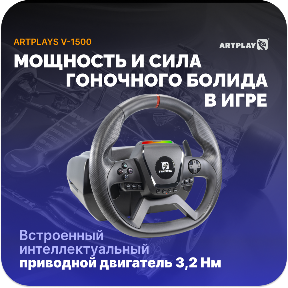 Руль Artplays V-1500 Force Feedback для PC, Xbox Series X/S. PlayStation 4, Xbox One информация: