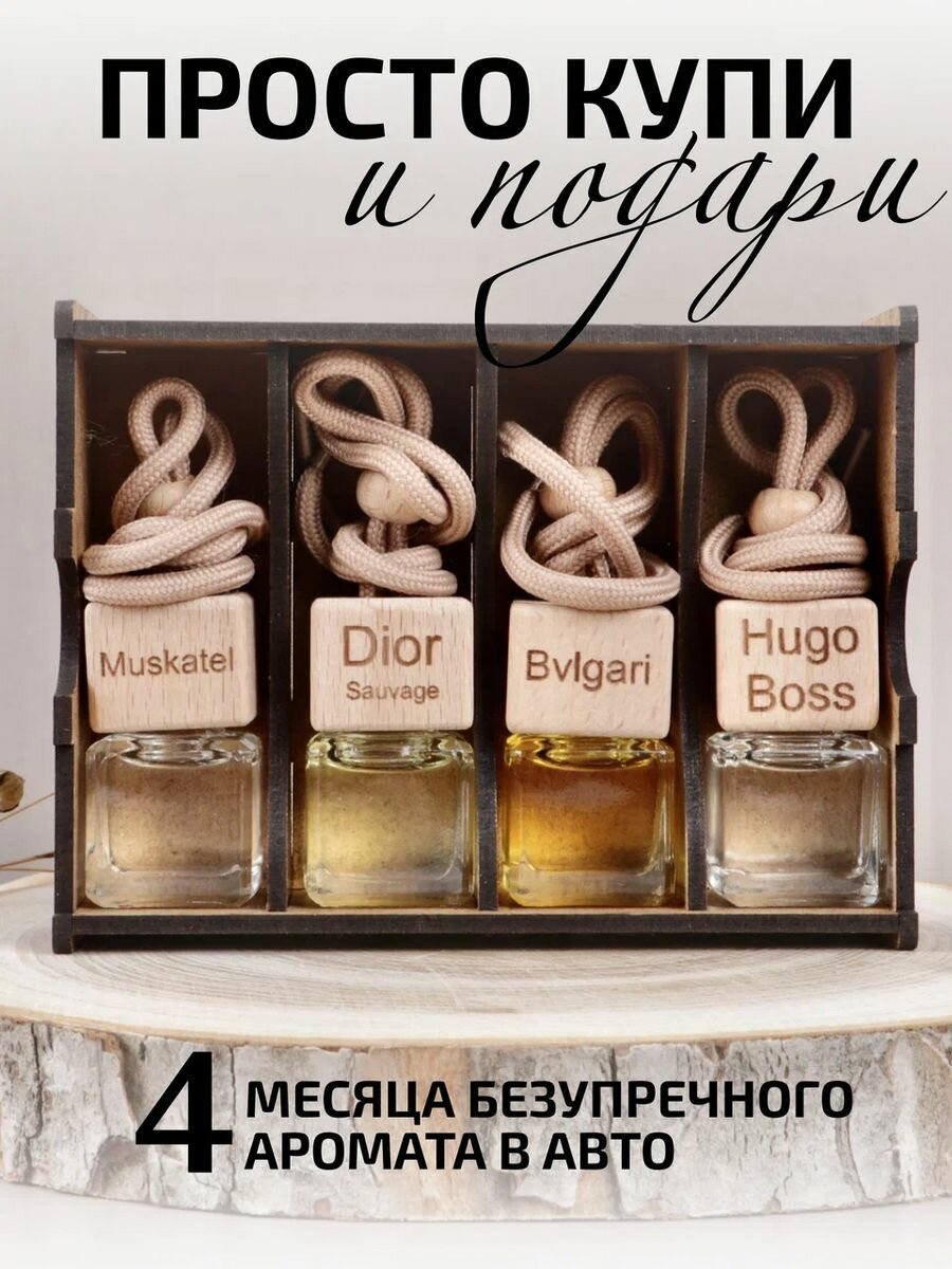 Подарок мужчине, мужу, парню. Набор ароматизаторов в машину Muskatel, Dior, Bvlgari, Hugo Boss 700 ₽