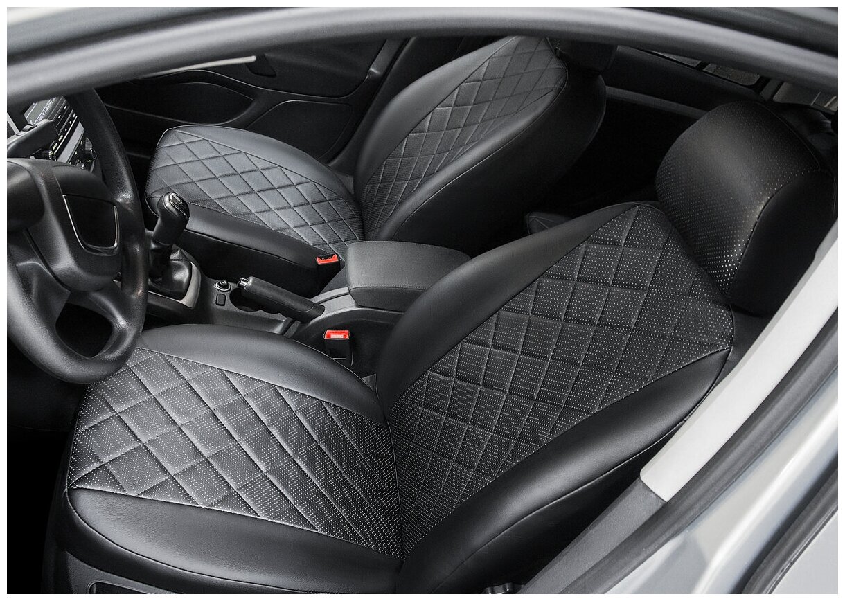 Авточехлы Rival Ромб (спинка цельная) для сидений Datsun on-DO седан 2014-н.в./Lada Granta седан, лифтбек (кроме Drive Active) 2011-2018 2018-н.в., эко-кожа, черные, SC.6005.2