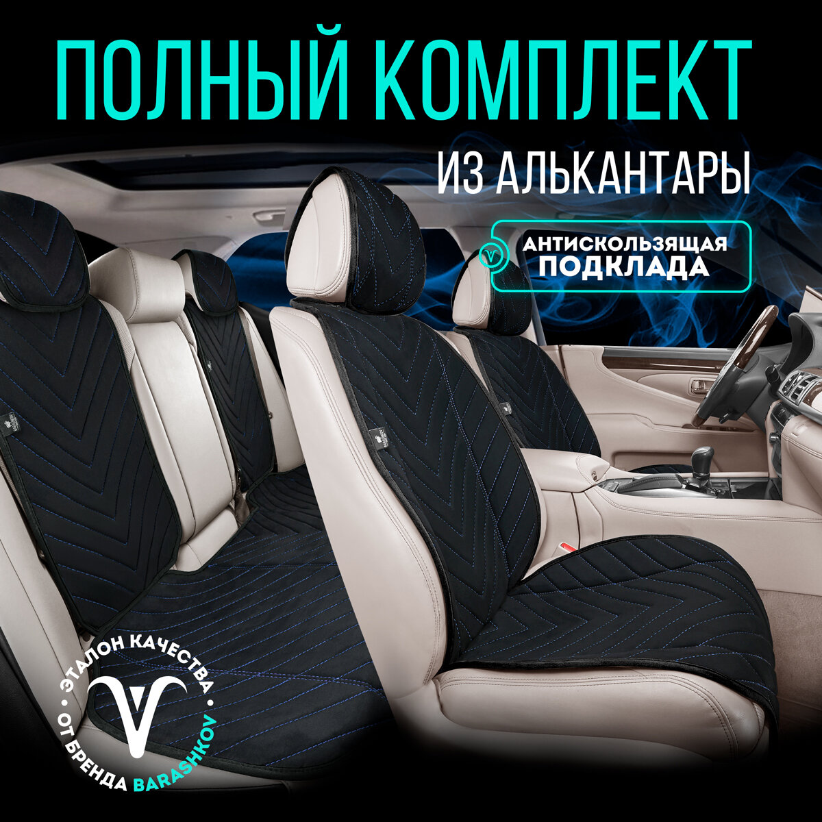Отзывы на Полный комплект накидки из алькантары на сиденья автомобиля. Модель L SV PK.Чёрный/синяя строчка