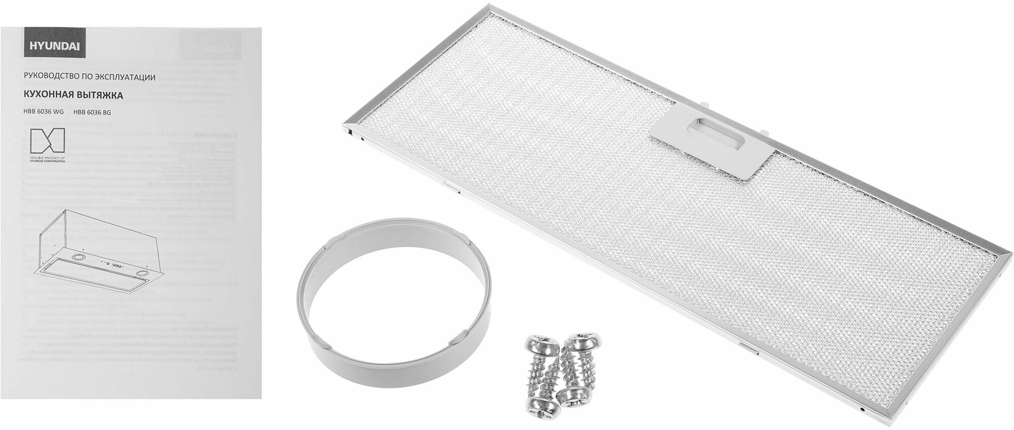 Встраиваемая вытяжка Hyundai HBB 6036 WG, управление кнопочное, белый информация: