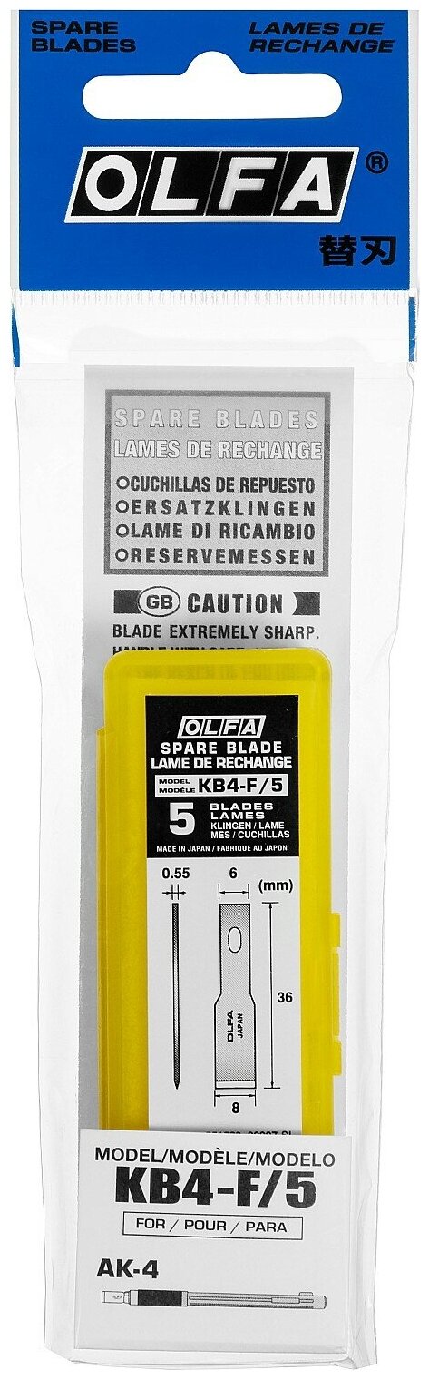 Лезвия лопаточные для ножа 6(8)х35,5х0,55мм 5шт OLFA OL-KB4-F/5 информация: