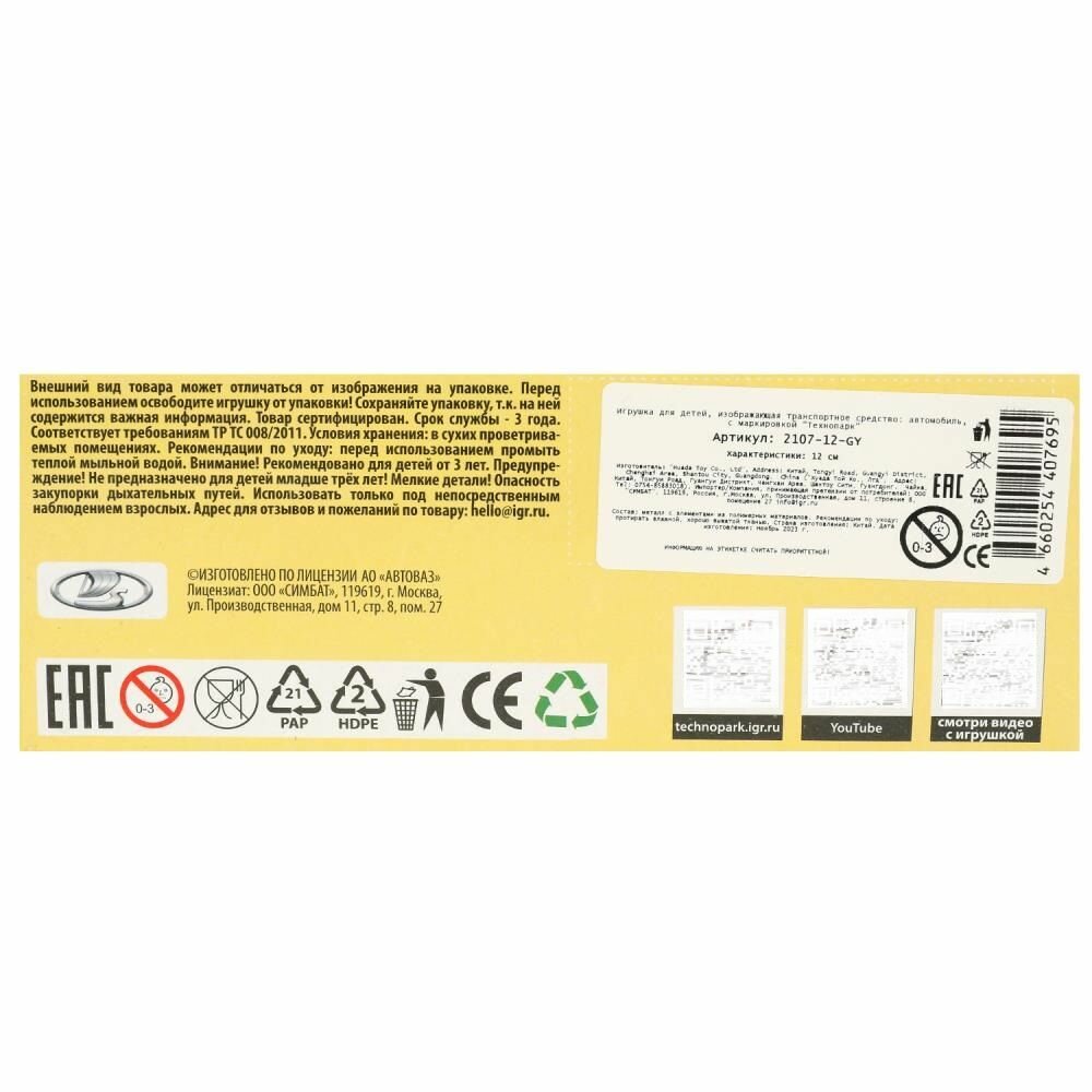 Машина металлическая ТехноПарк ВАЗ-2107 Жигули, серая информация:
