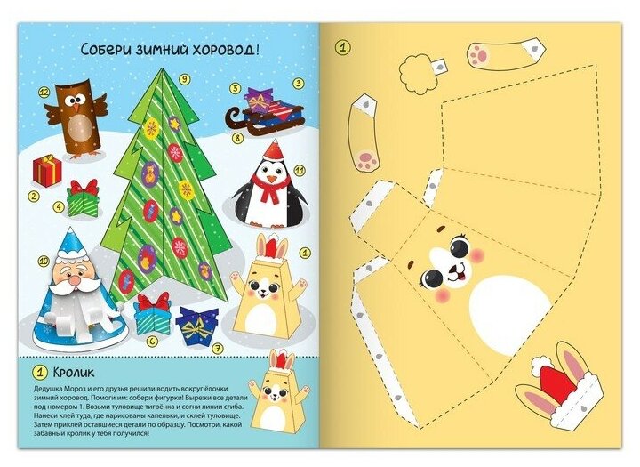 | Комплектация | Какие поделки можно смастерить с этой книгой кролика; 6 подарков; объёмную ёлочку; пингвина; Деда Мороза; сову; сани. |