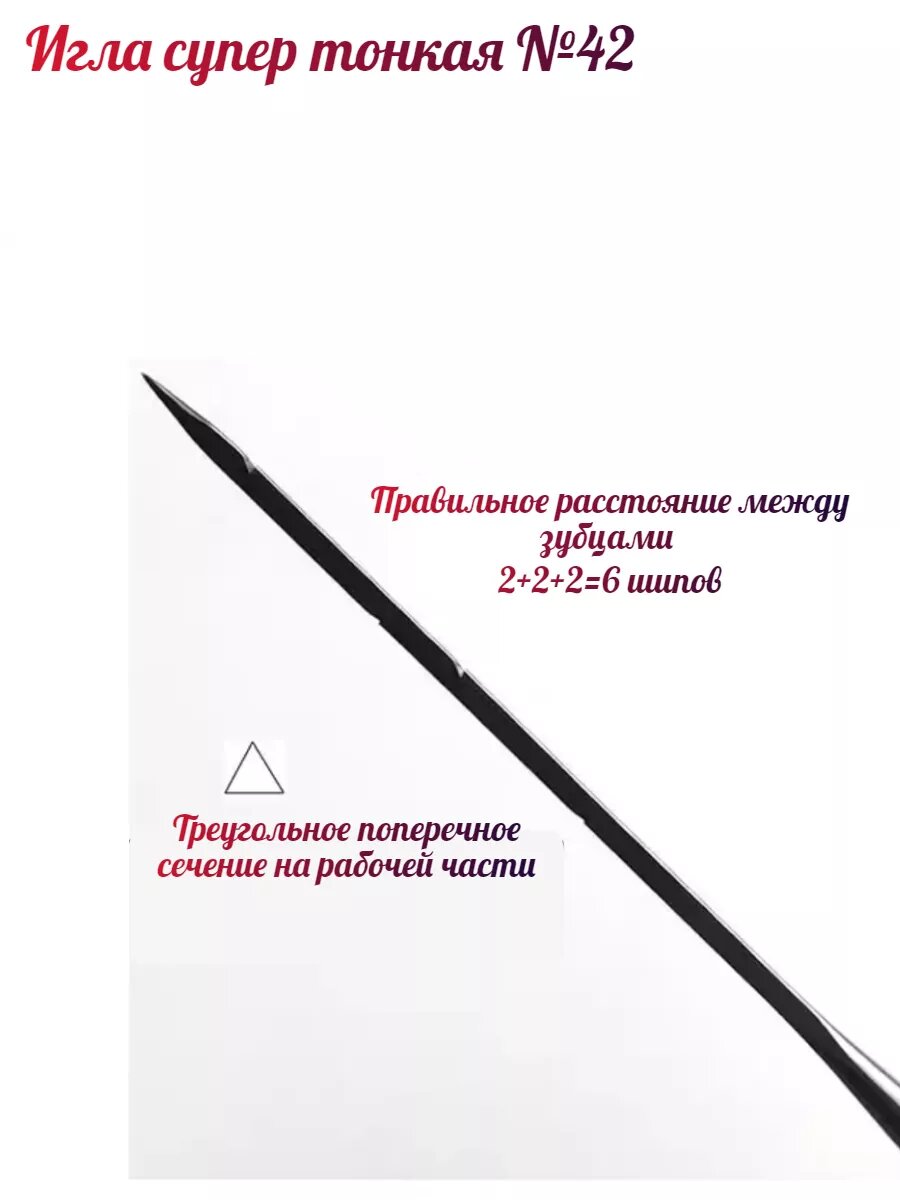 Иглы для валяния шерсти супер тонкие №42 бренда "Кофанов" из калёной стали со стандартной формой зубцов, 10 штук в комплекте + методичка информация: