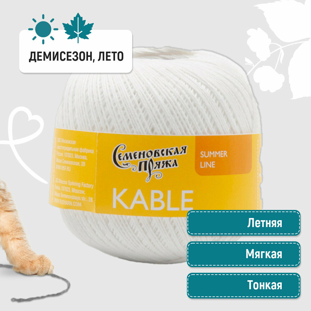 Нитки для вязания Семеновская пряжа (Kable) Кабле 5 шт, 100% хлопок, летняя, белый супер №110700 информация: