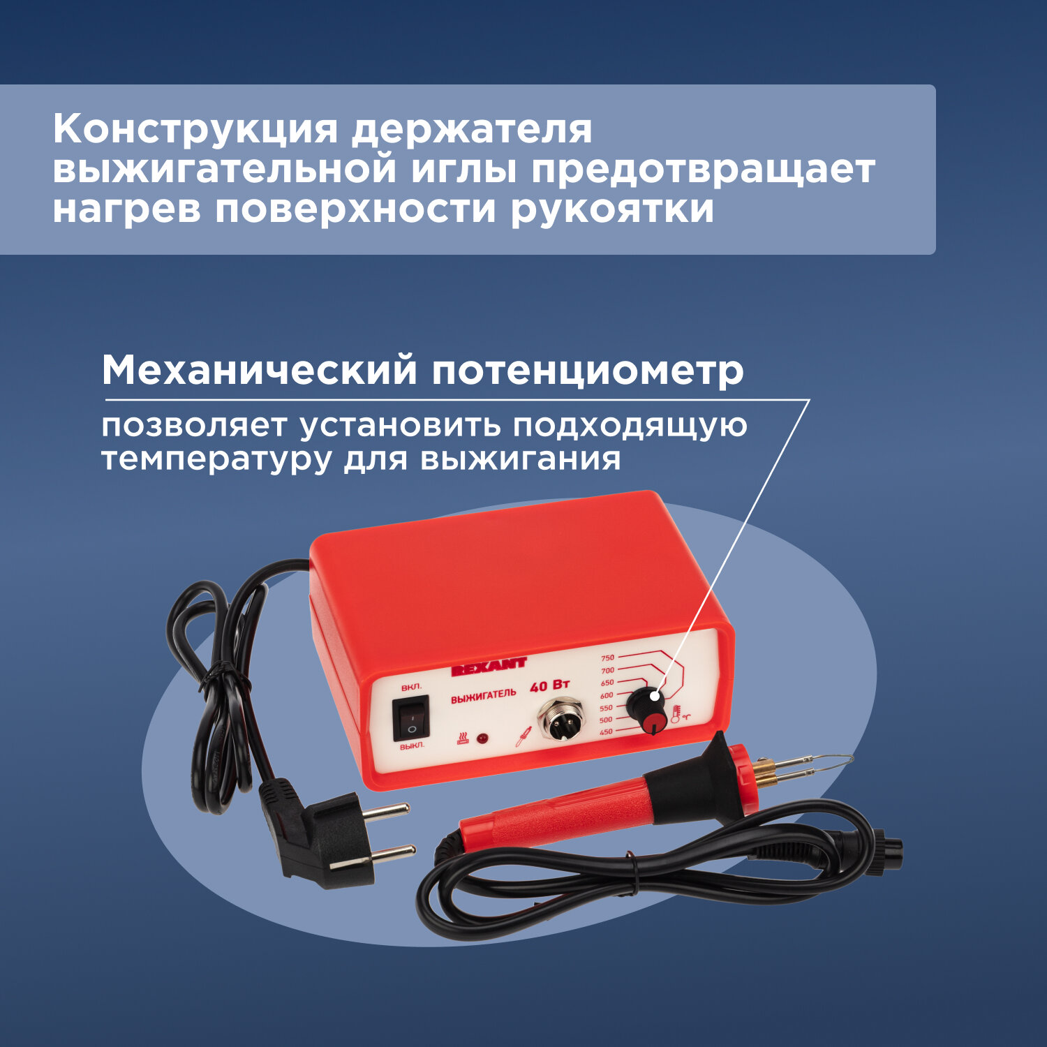 Выжигатель по дереву REXANT с термоконтролем 220В/40Вт информация: