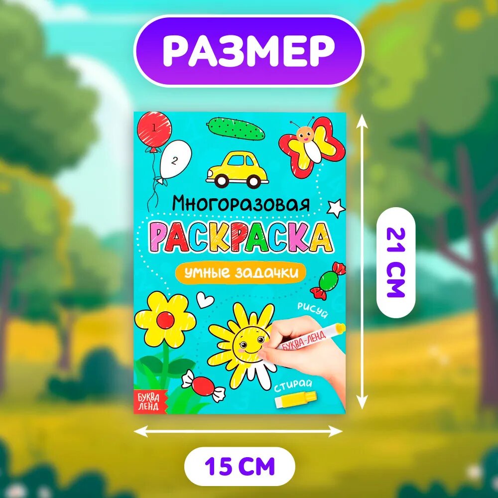 10 цен на Раскраска многоразовая "Рисуй-стирай. Умные задачки" 12 стр, 4 маркера на водной основе, Буква-Ленд