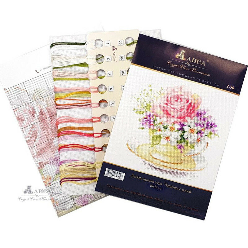 10 цен на Набор для вышивания алиса арт.2-56 Легкие краски утра. Чашечка с розой 16х15 см