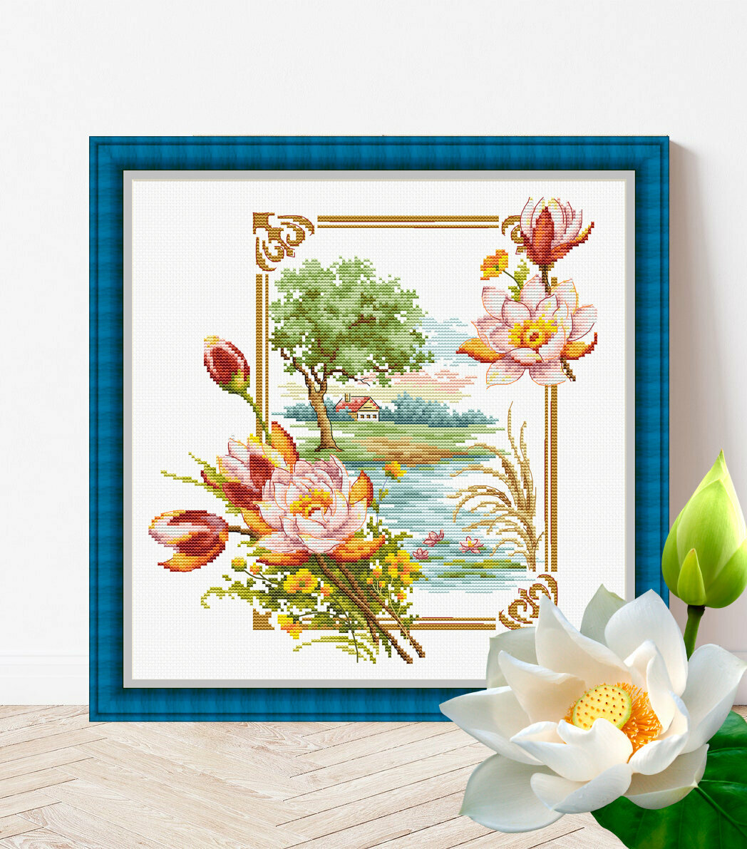 10 цен на Набор крестом канва с рисунком 23 х 30 см(цена производителя) "Лилии" каролинка