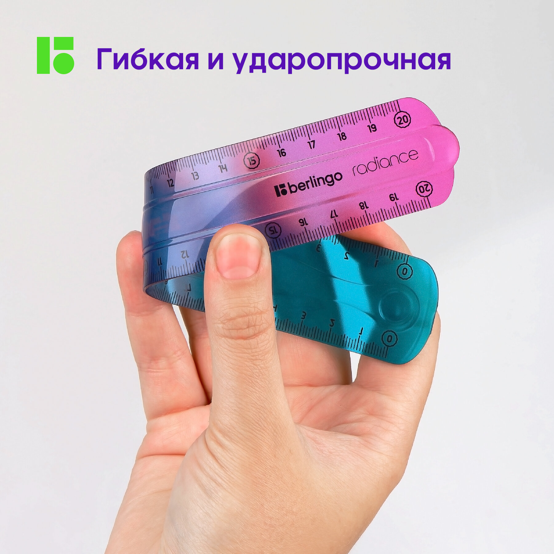10 цен на Линейка 20см Berlingo "Radiance", пластиковая, гибкая, розовый/голубой градиент