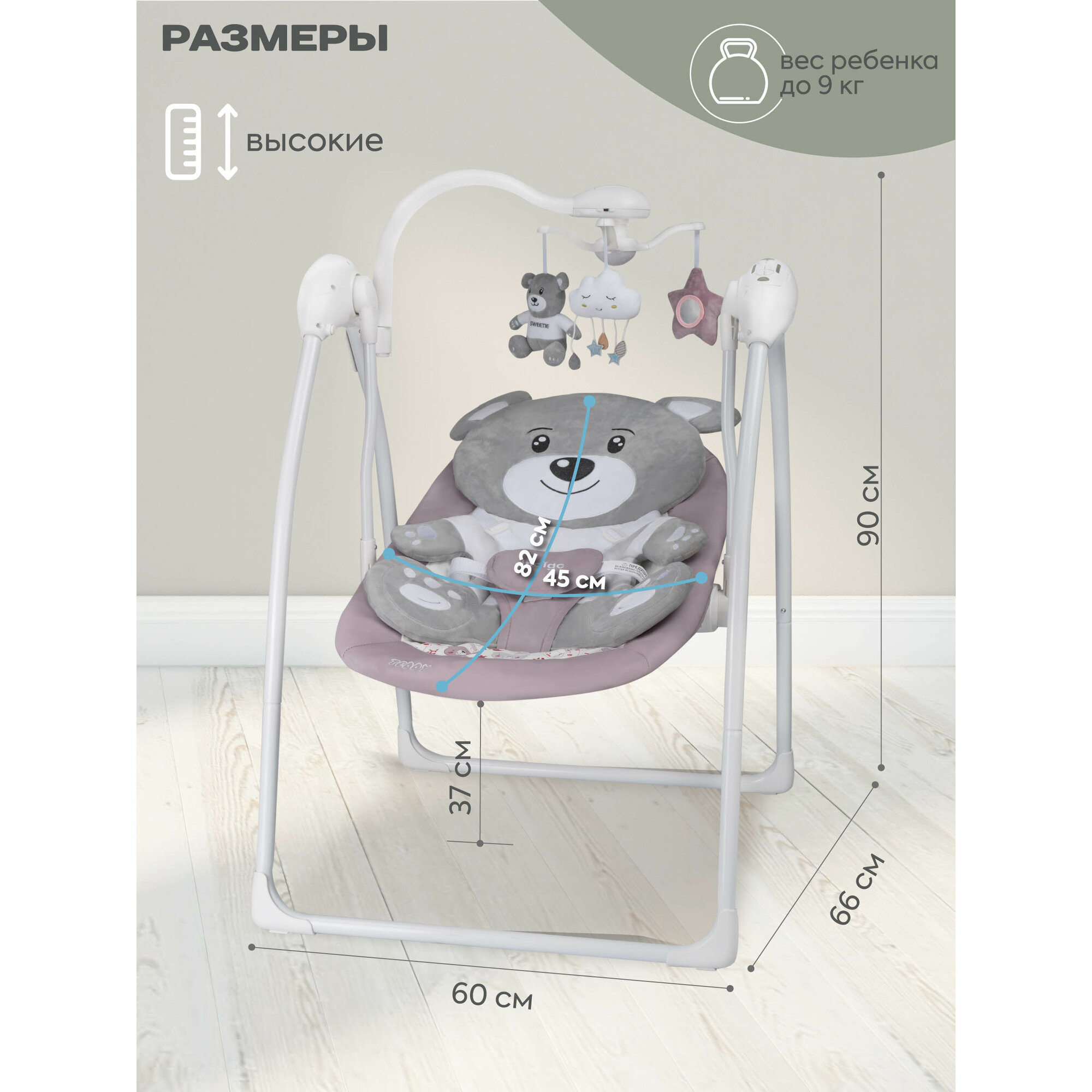 Электрокачели Indigo Teddy с мобилем и пультом, розовый информация: