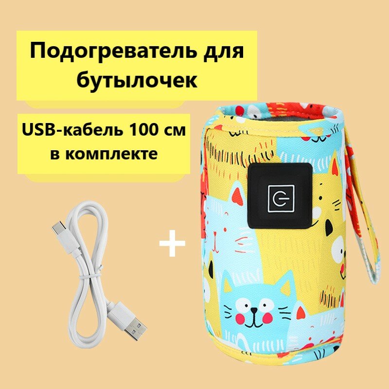 Портативный подогреватель бутылочек, детская водонепроницаемая термосумка-чехол "Кошки", желтая информация: