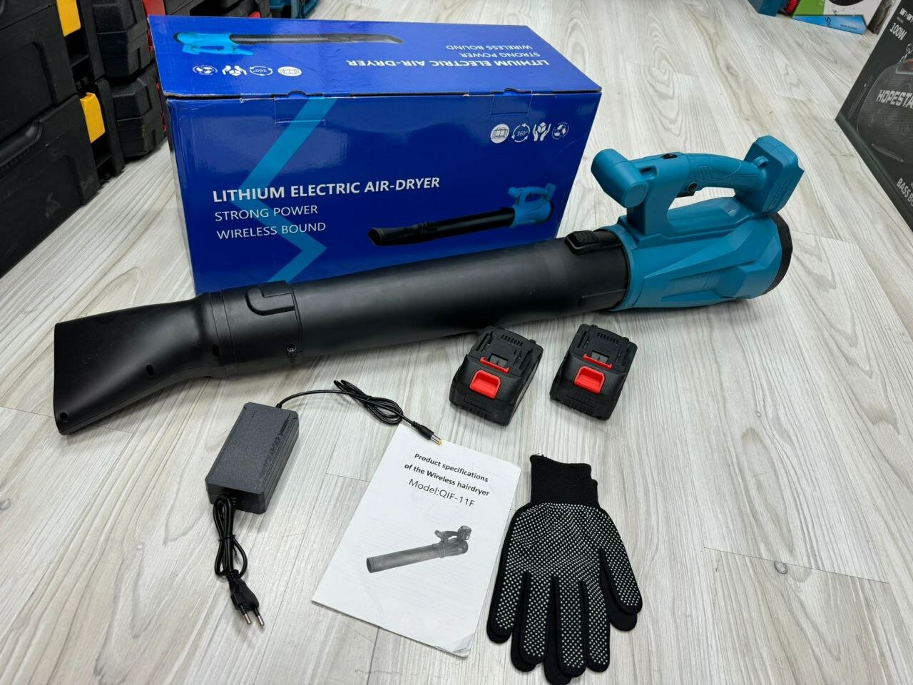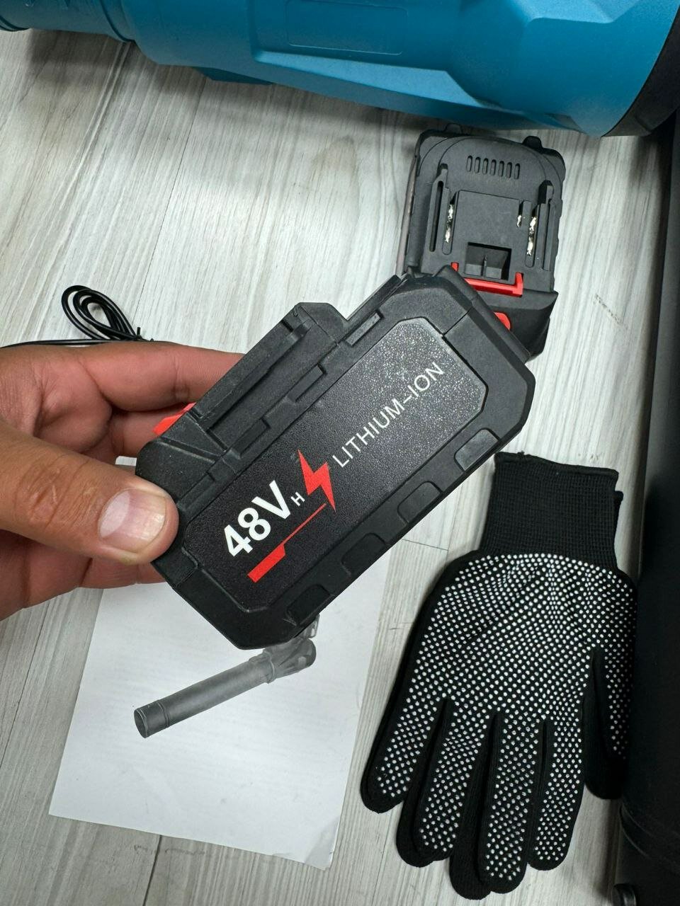 Воздуходувка аккумуляторная садовая, 2 АКБ + перчатки, синий информация: