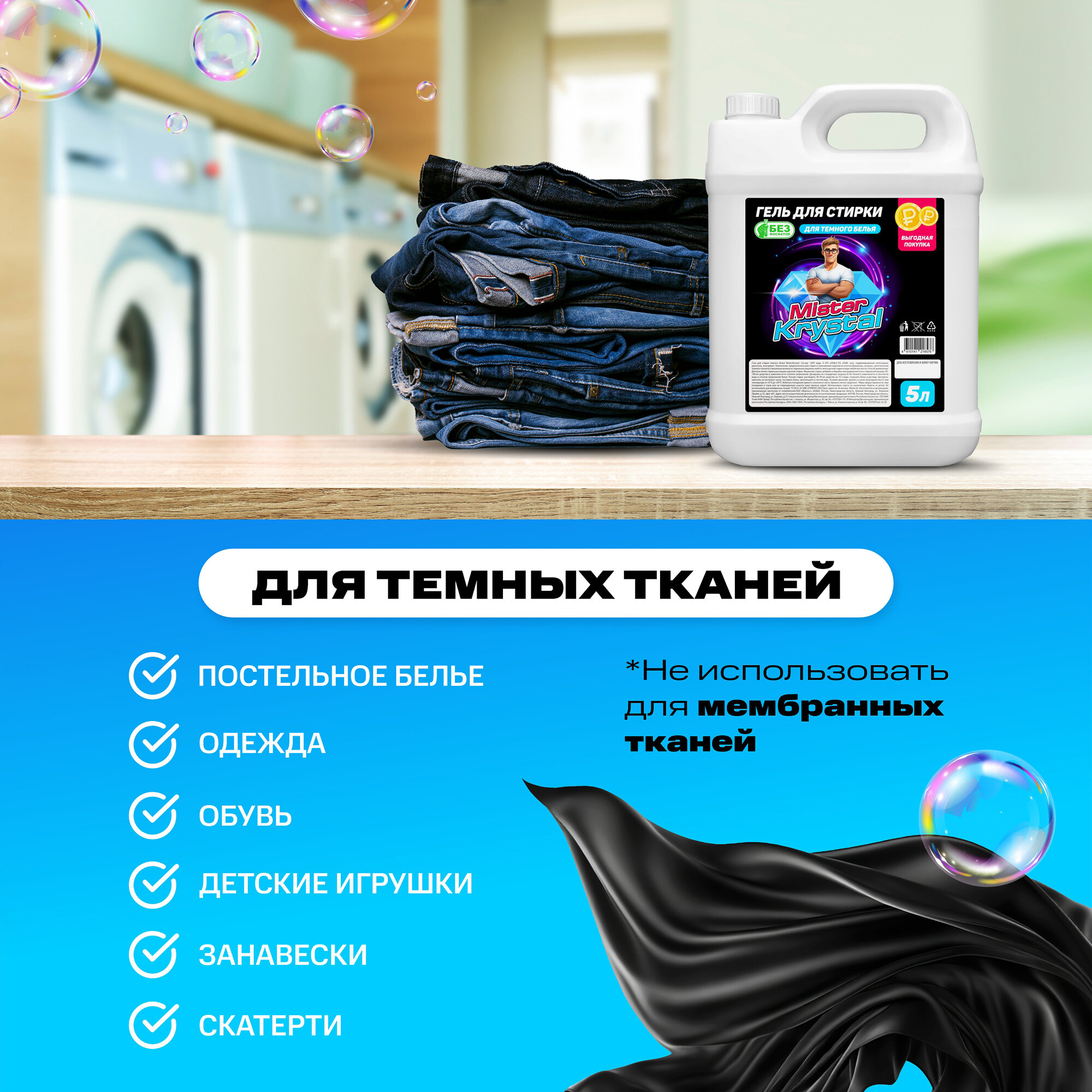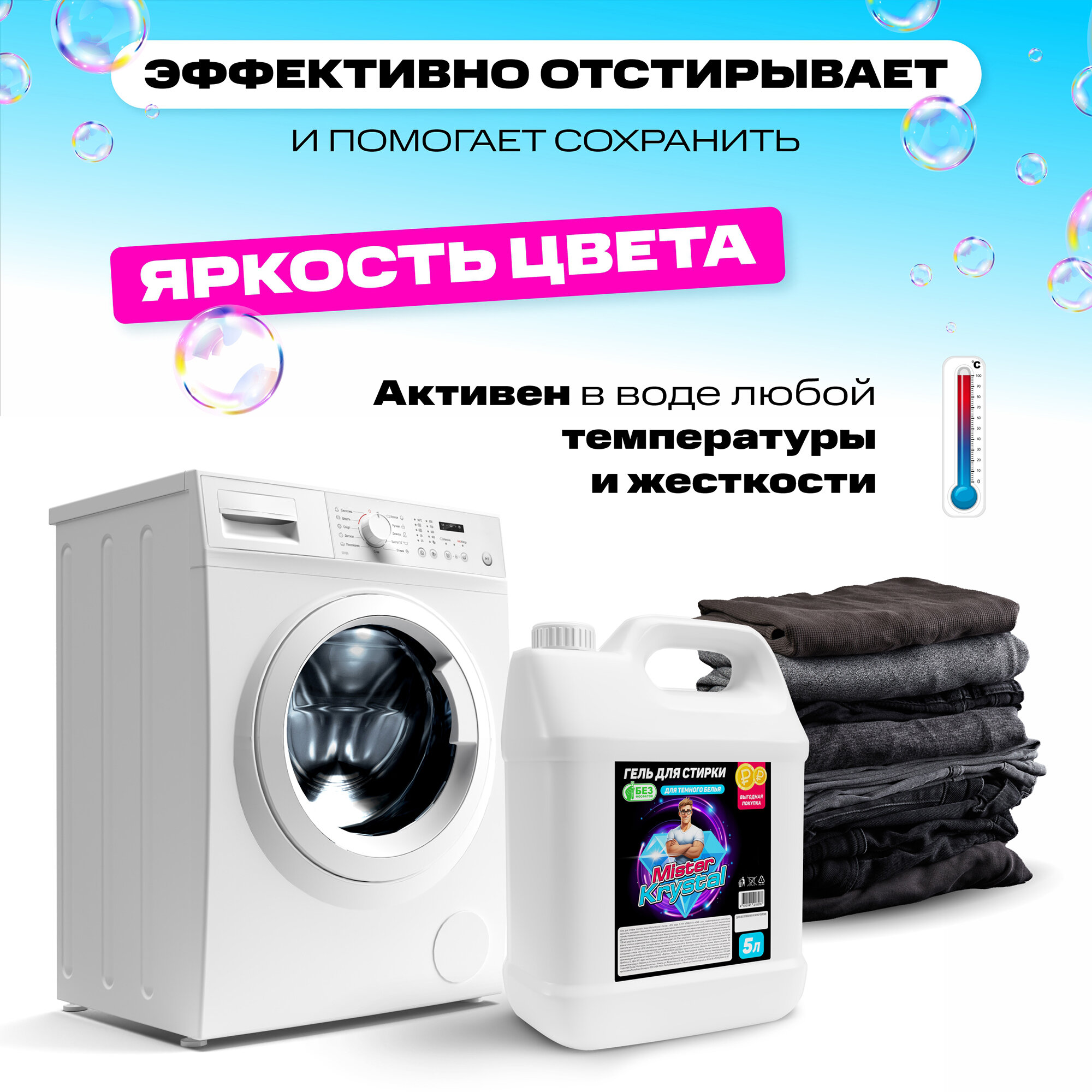 Отзывы на Гель для стирки 5л, Mister Krystal, для темного белья, концентрат