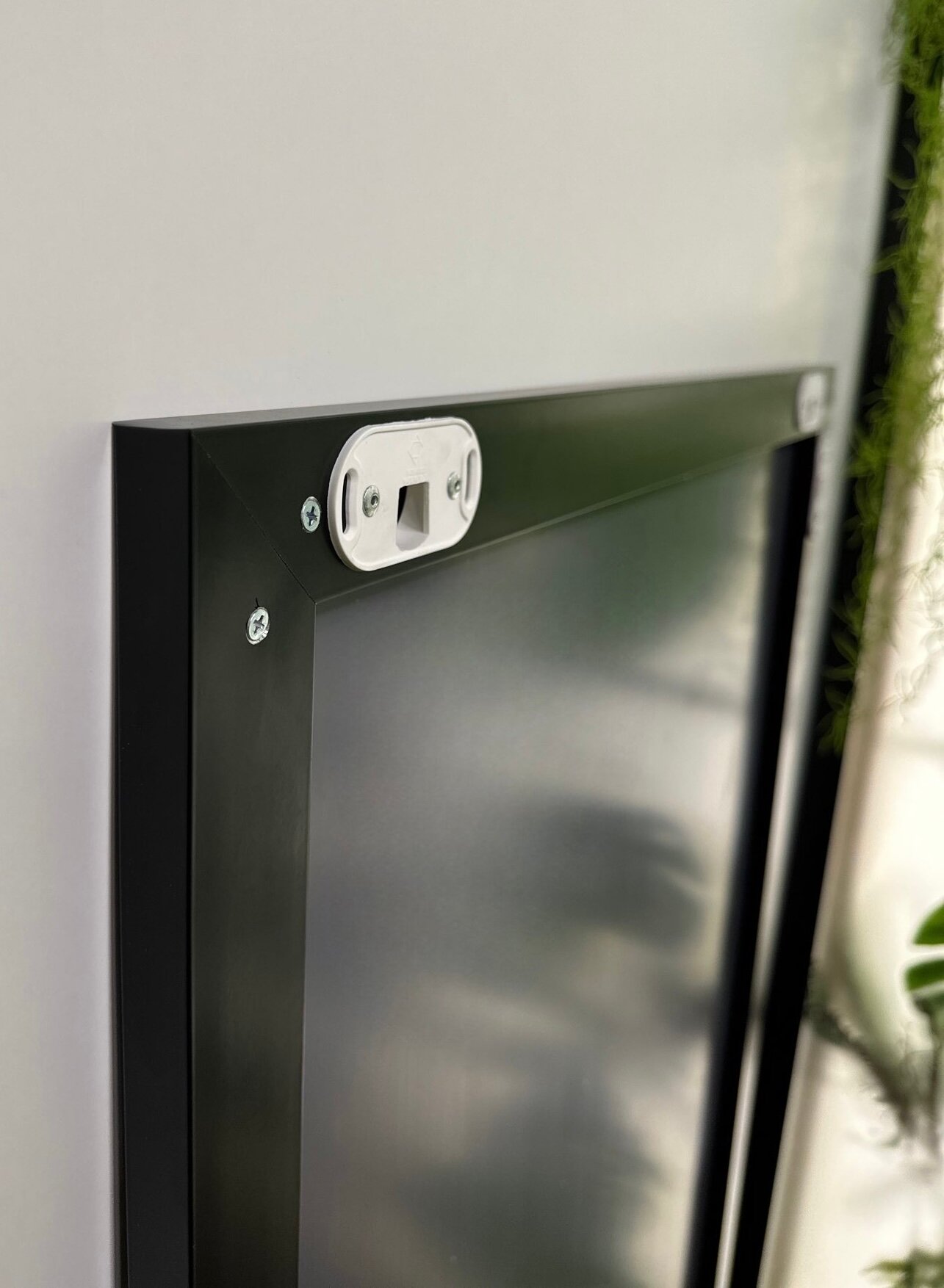 | Комплектация | 1. Зеркальное полотно в алюминиевой раме - 1 шт. (профиль: передняя ширина 8 мм, задняя ширина 45 мм, толщина профиля 20 мм) 2. Крепление подвесной системы - 2 шт. |