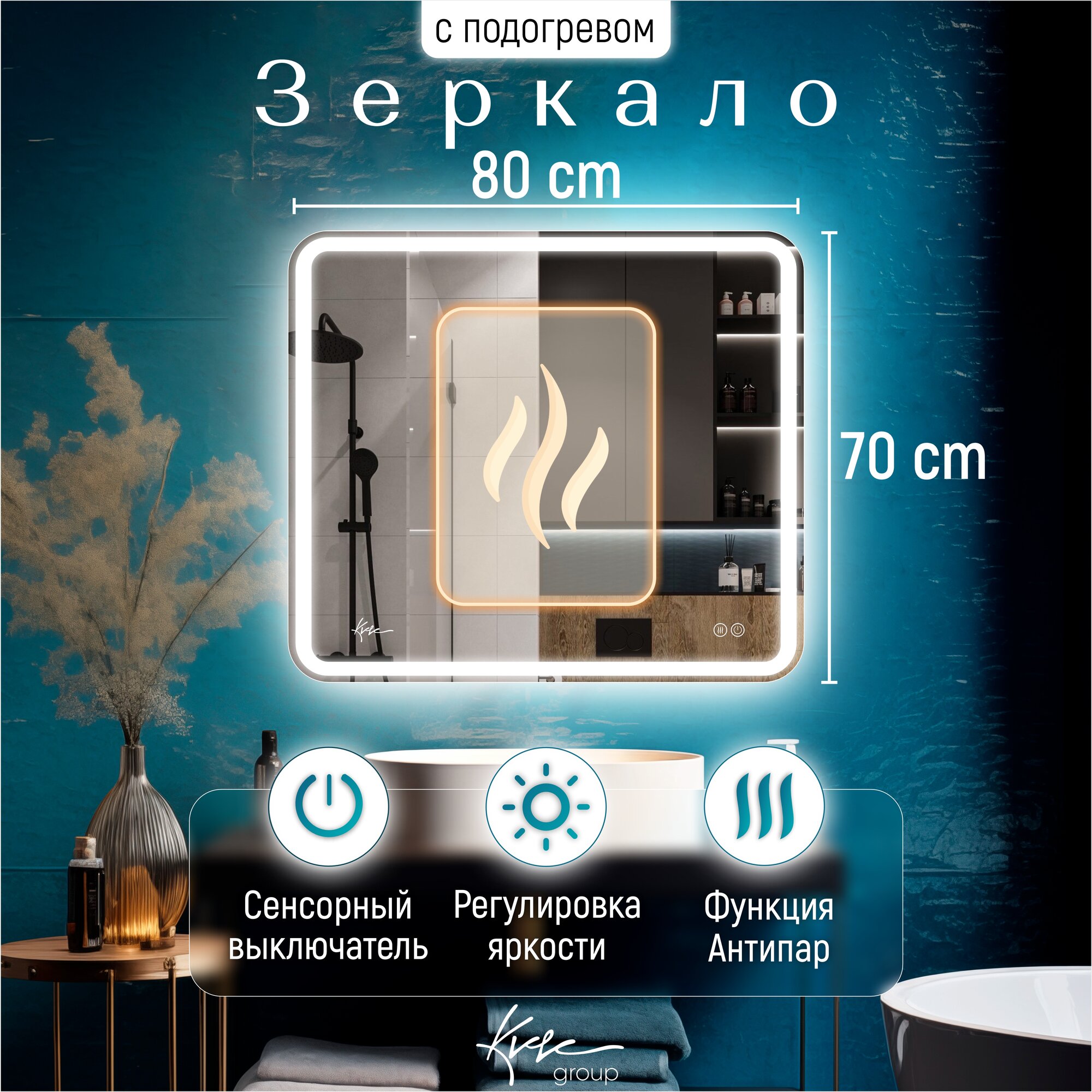 10 цен на Зеркало настенное в ванную с подсветкой и подогревом Milan 80*70 см (сенсорное управлением, прямоугольное зеркало для ванной, холодная подсветка 6000К)
