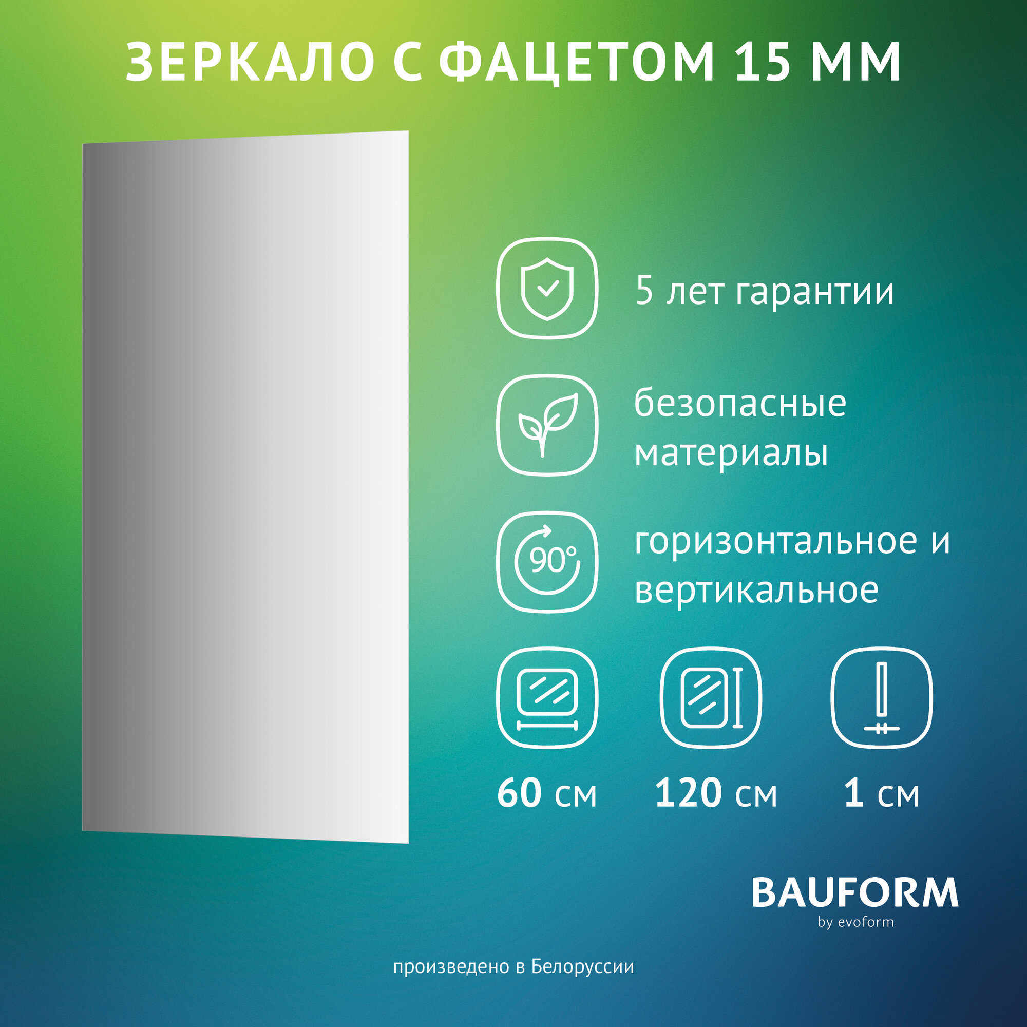 Отзывы на Зеркало настенное Прямоугольное с фацетом FACET 15 BAUFORM 60х120 см, для гостиной, прихожей, спальни, кабинета и ванной комнаты, SP 9060