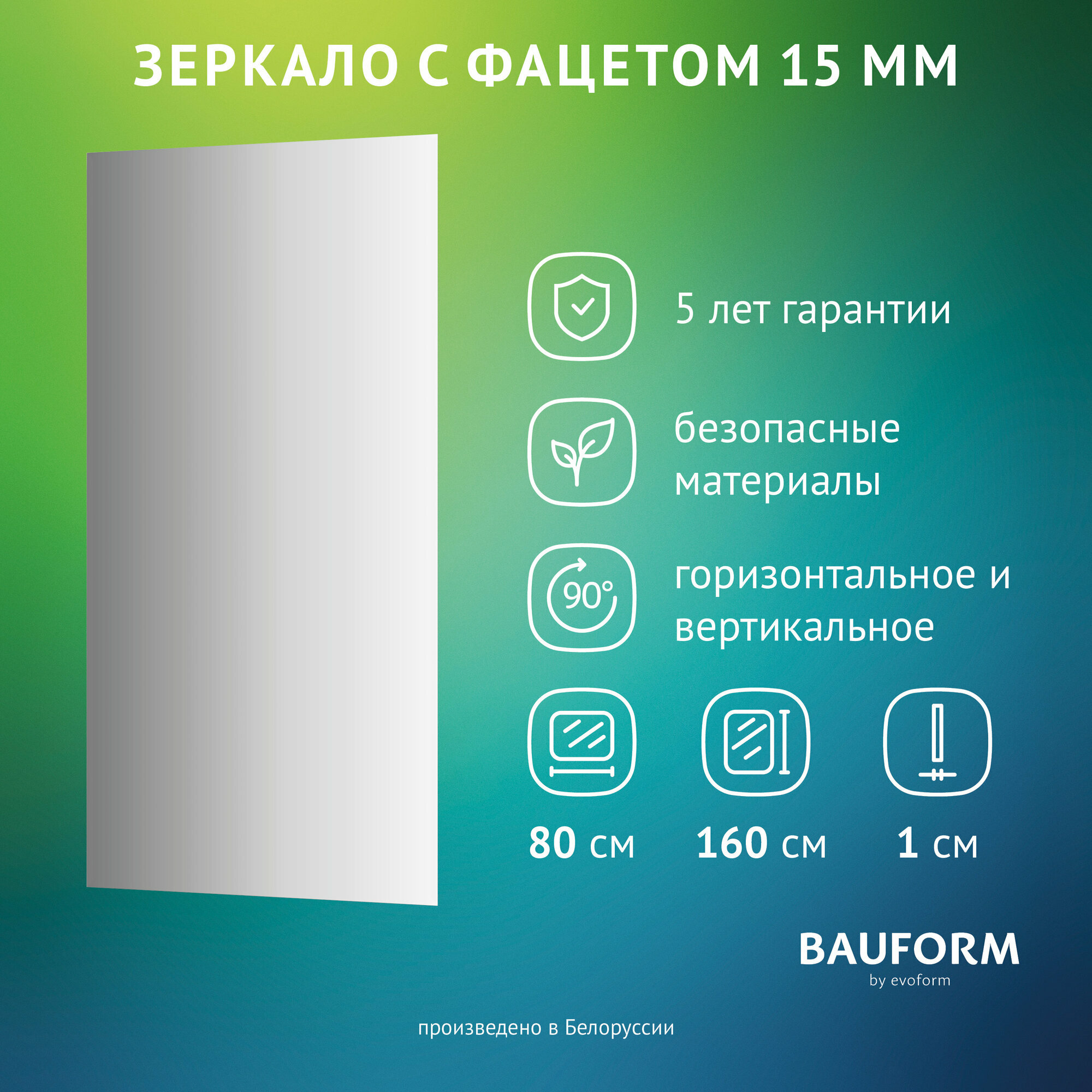 10 цен на Зеркало настенное Прямоугольное с фацетом FACET 15 BAUFORM 80х160 см, для гостиной, прихожей, спальни, кабинета и ванной комнаты, SP 9042