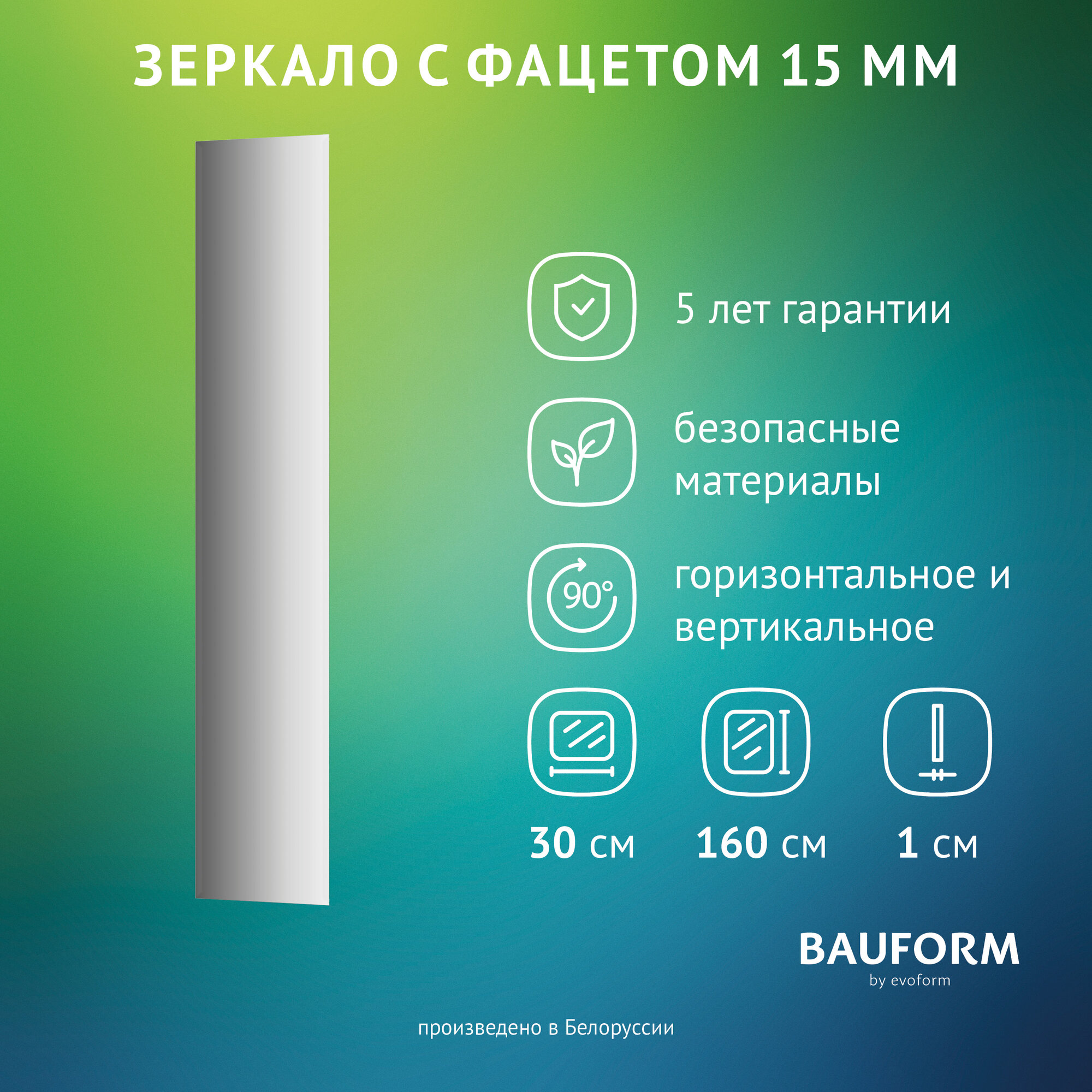Отзывы на Зеркало настенное Прямоугольное с фацетом FACET 15 BAUFORM 30х160 см, для гостиной, прихожей, спальни, кабинета и ванной комнаты, SP 9047