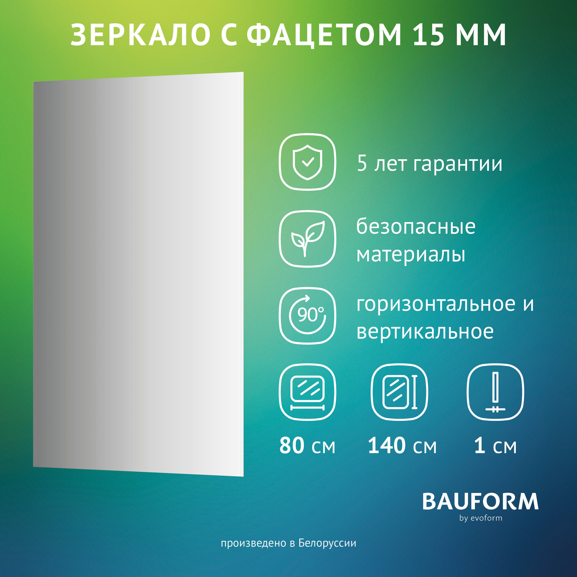 Зеркало настенное Прямоугольное с фацетом FACET 15 BAUFORM 80х140 см, для гостиной, прихожей, спальни, кабинета и ванной комнаты, SP 9050 информация: