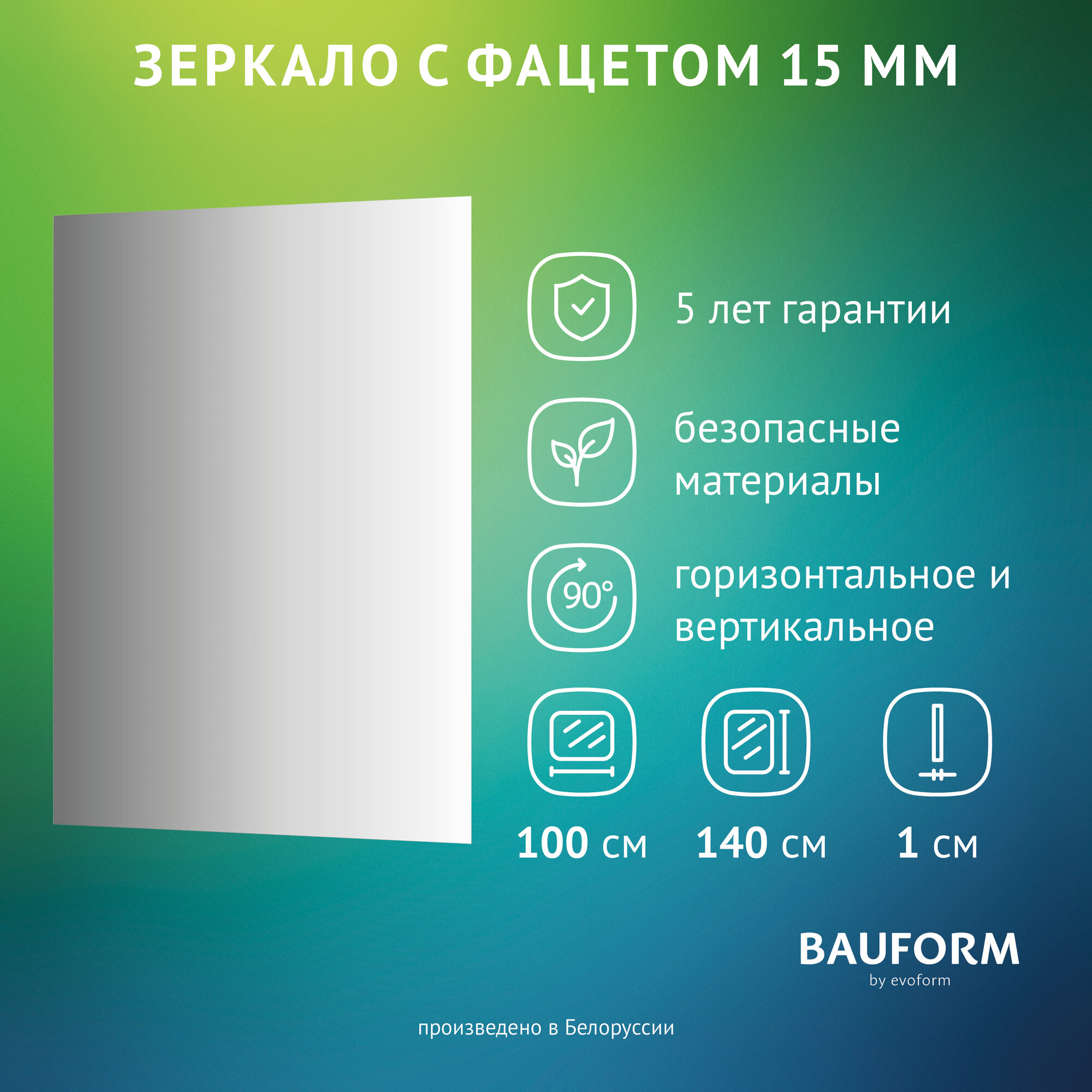 10 цен на Зеркало настенное Прямоугольное с фацетом FACET 15 BAUFORM 100х140 см, для гостиной, прихожей, спальни, кабинета и ванной комнаты, SP 9048
