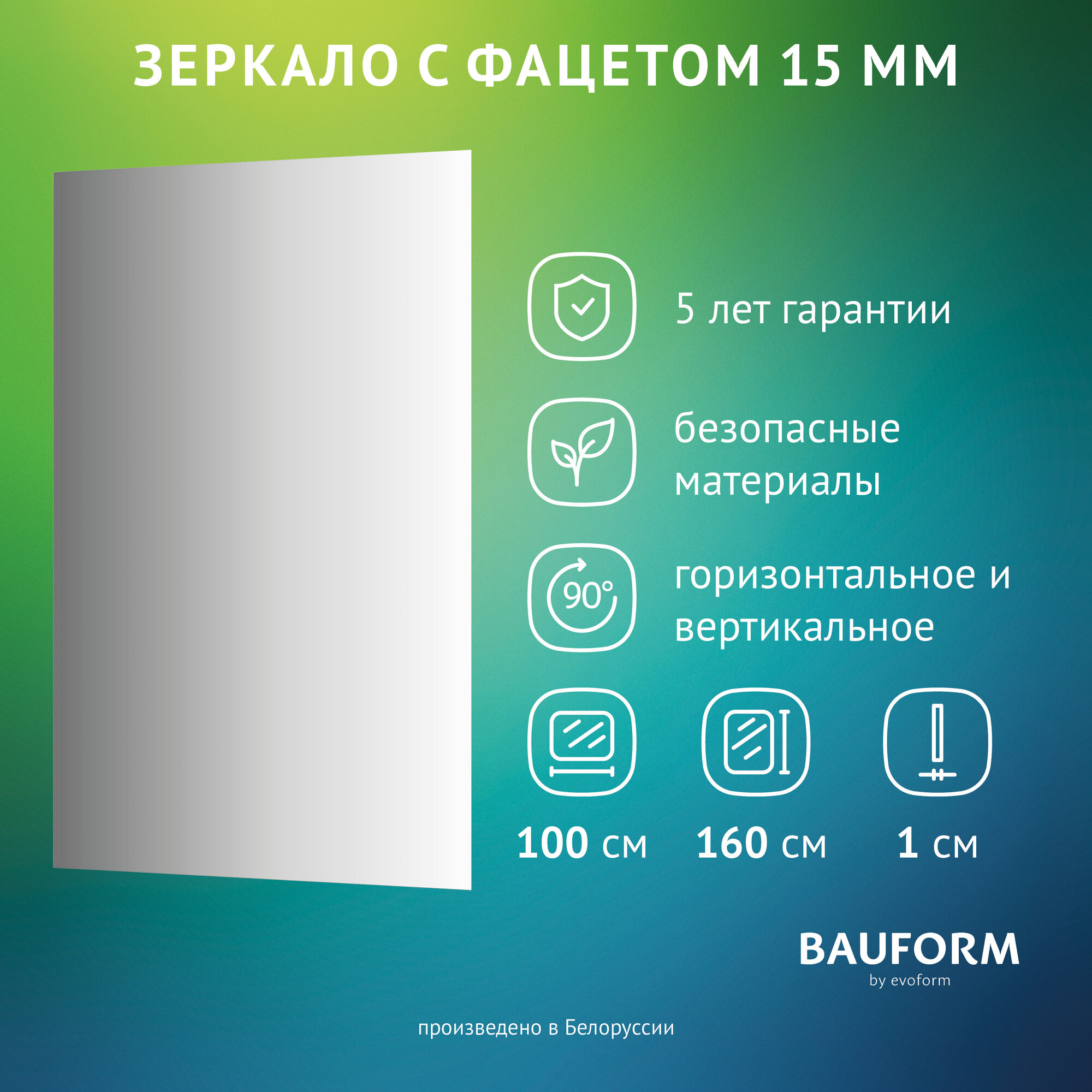 10 цен на Зеркало настенное Прямоугольное с фацетом FACET 15 BAUFORM 100х160 см, для гостиной, прихожей, спальни, кабинета и ванной комнаты, SP 9040