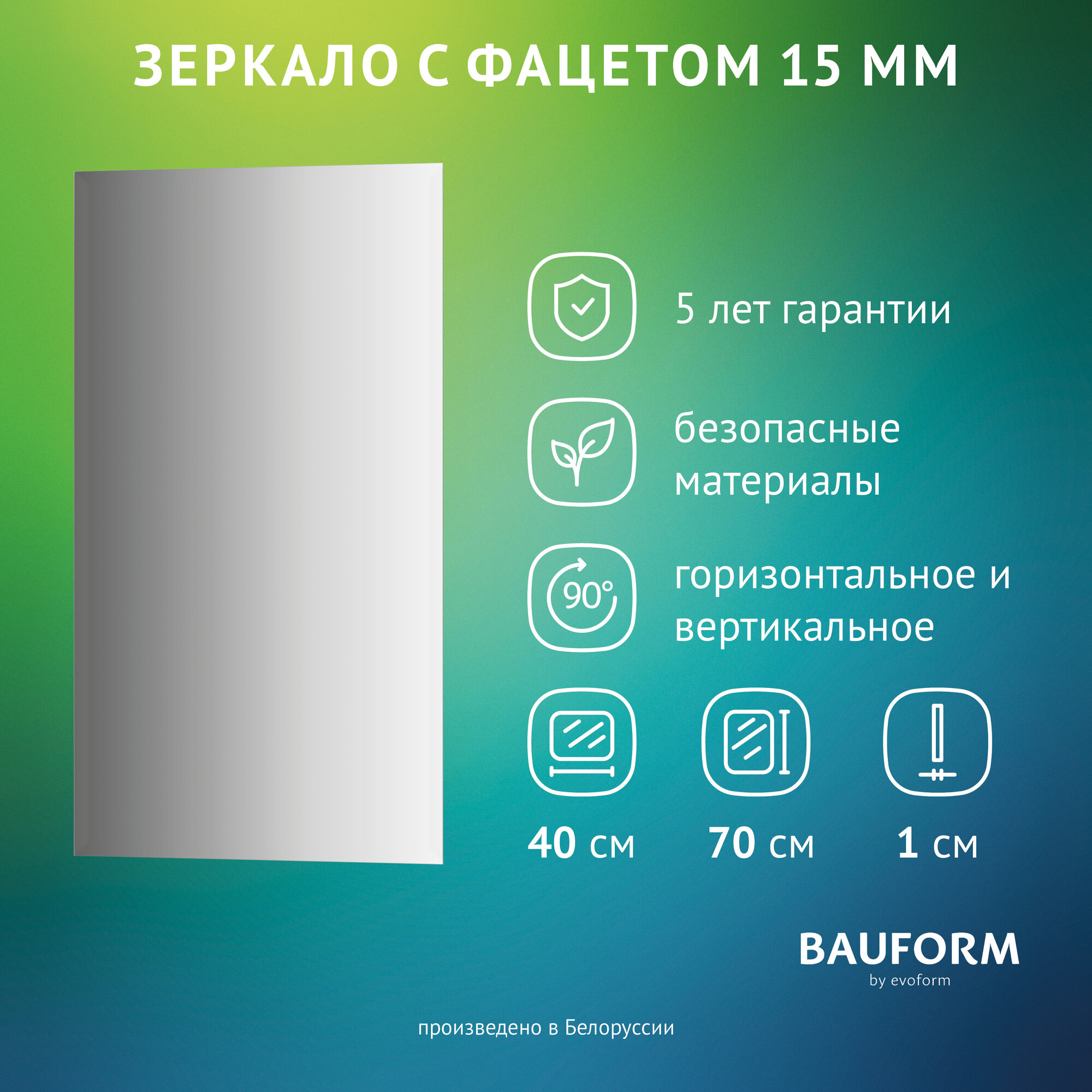 10 цен на Зеркало настенное Прямоугольное с фацетом FACET 15 BAUFORM 40х70 см, для гостиной, прихожей, спальни, кабинета и ванной комнаты, SP 9088