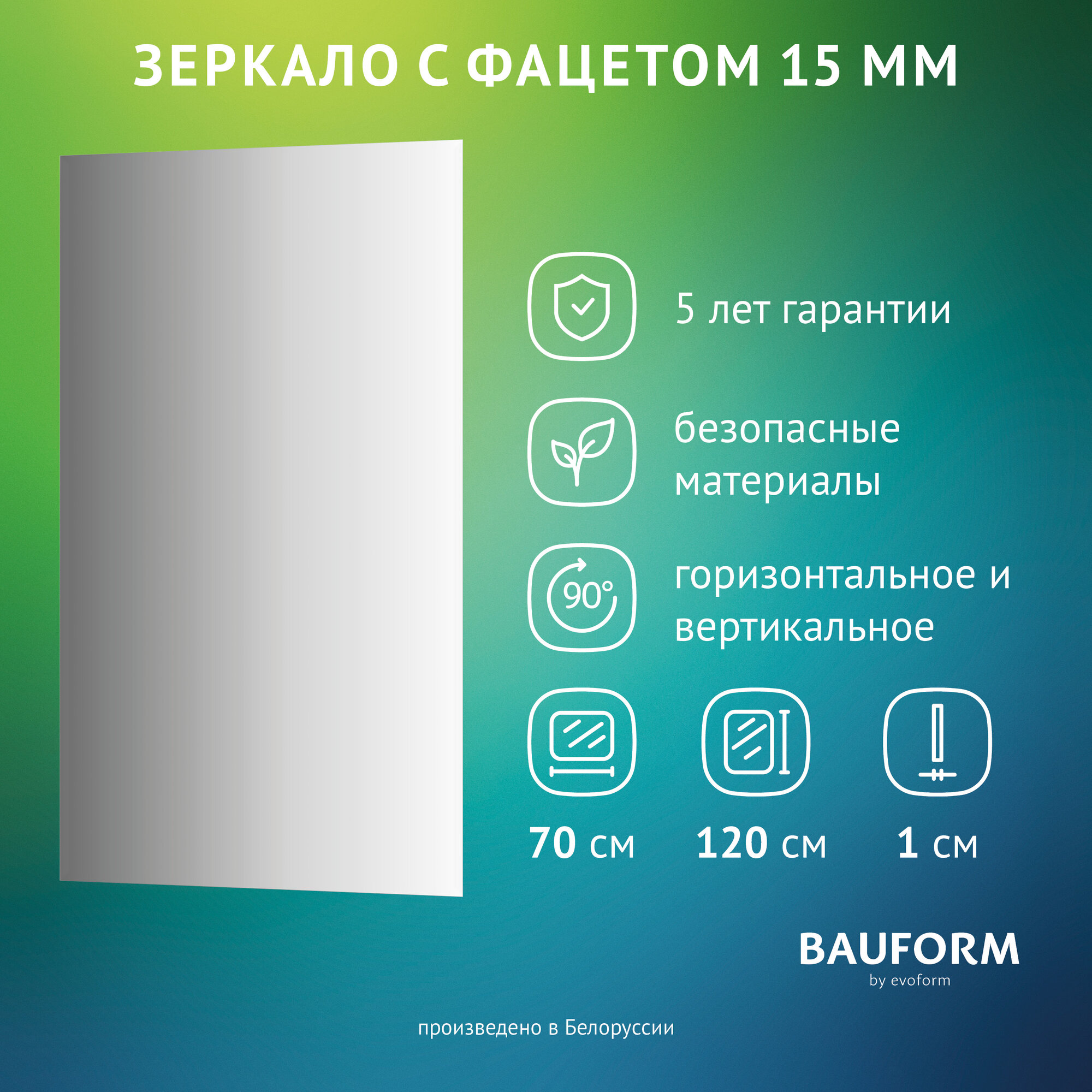 Отзывы на Зеркало настенное Прямоугольное с фацетом FACET 15 BAUFORM 70х120 см, для гостиной, прихожей, спальни, кабинета и ванной комнаты, SP 9059