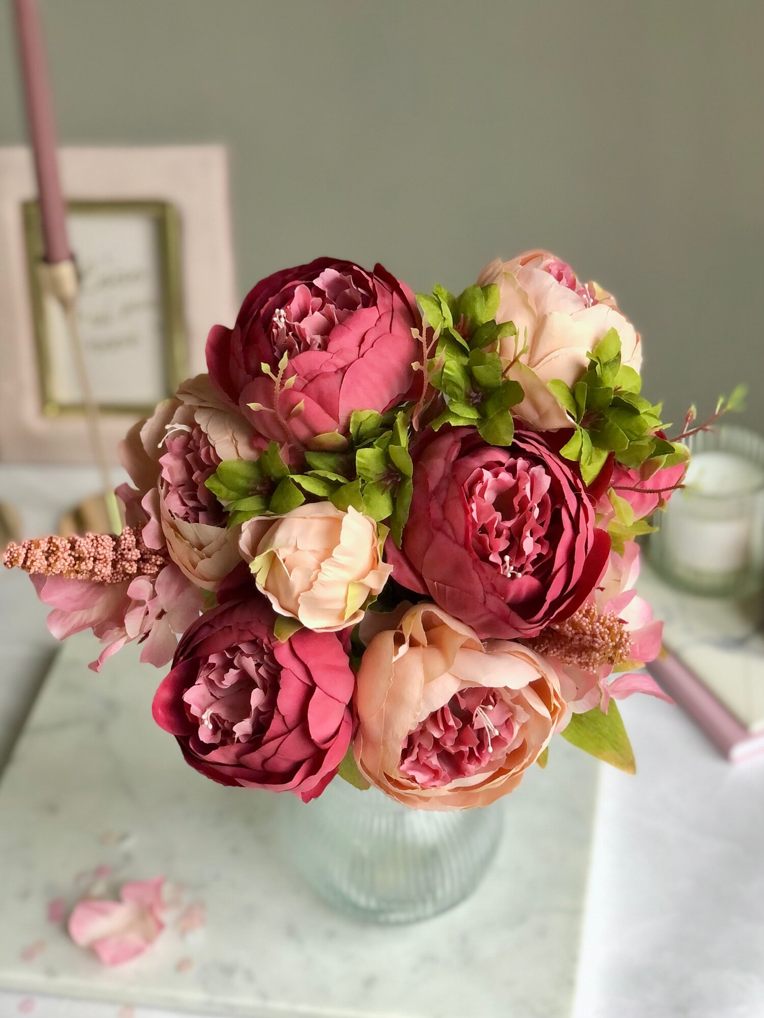 Отзывы на Искусственные цветы пионы для декора / Декоративный букет / Цветочная композиция, 45 см, бордовый