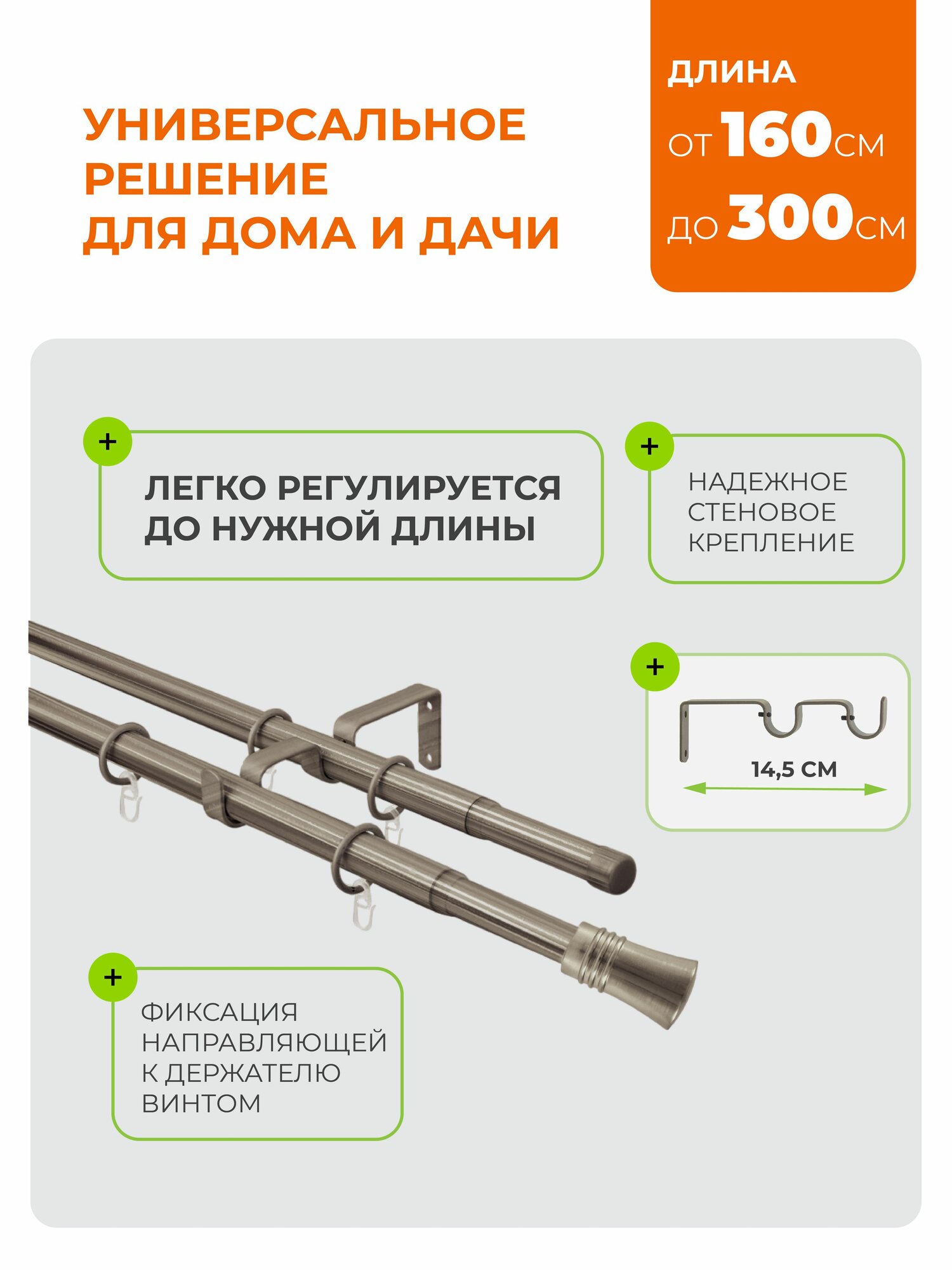 Карниз для штор двухрядный (2 ряда) металлический 300 см, Сталь. Телескоп диаметр 16/19 мм; длина 160/300 см. 15.592 2 688 ₽