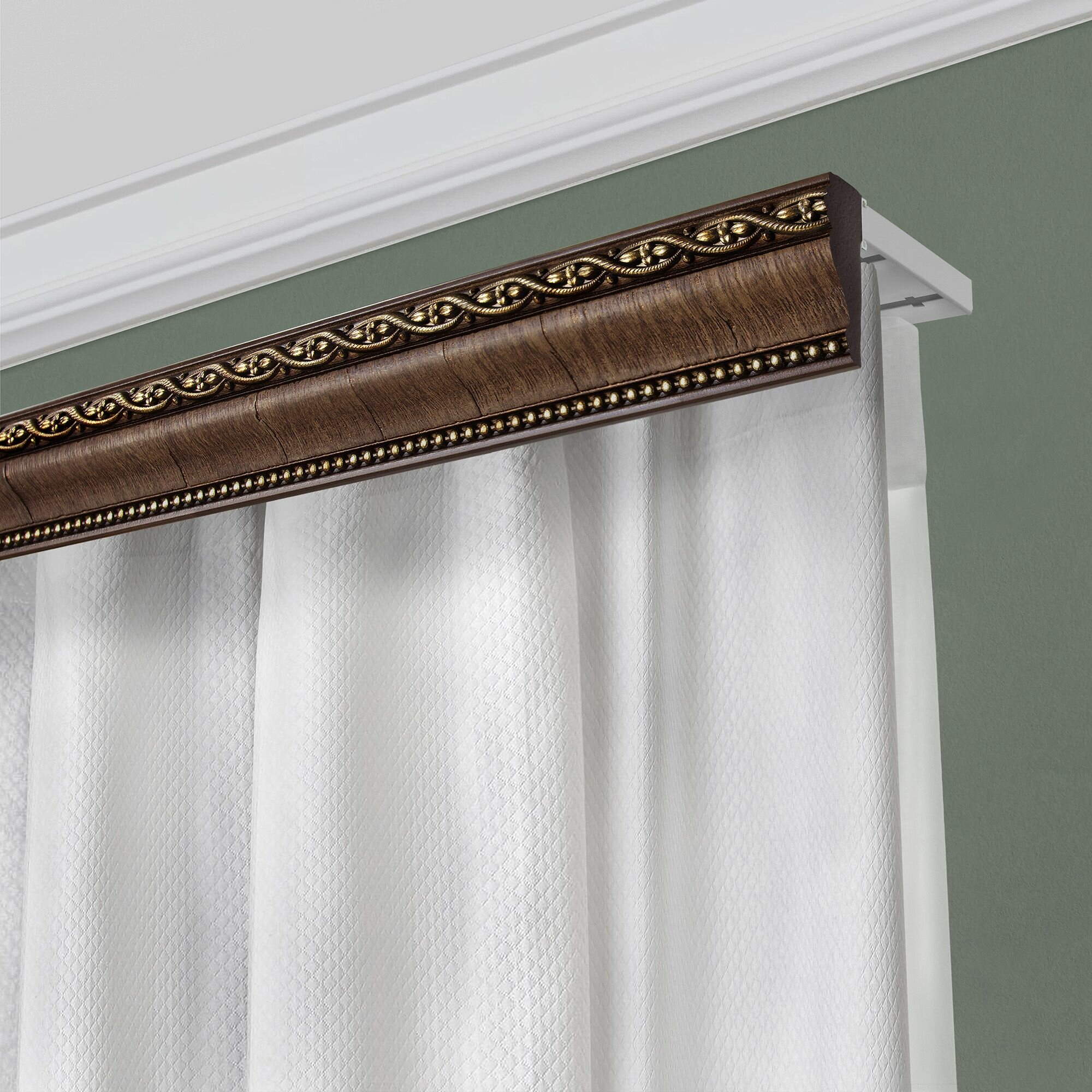 Карниз для штор и гардин двухрядный потолочный с багетной планкой 180 см, цвет Красное дерево информация: