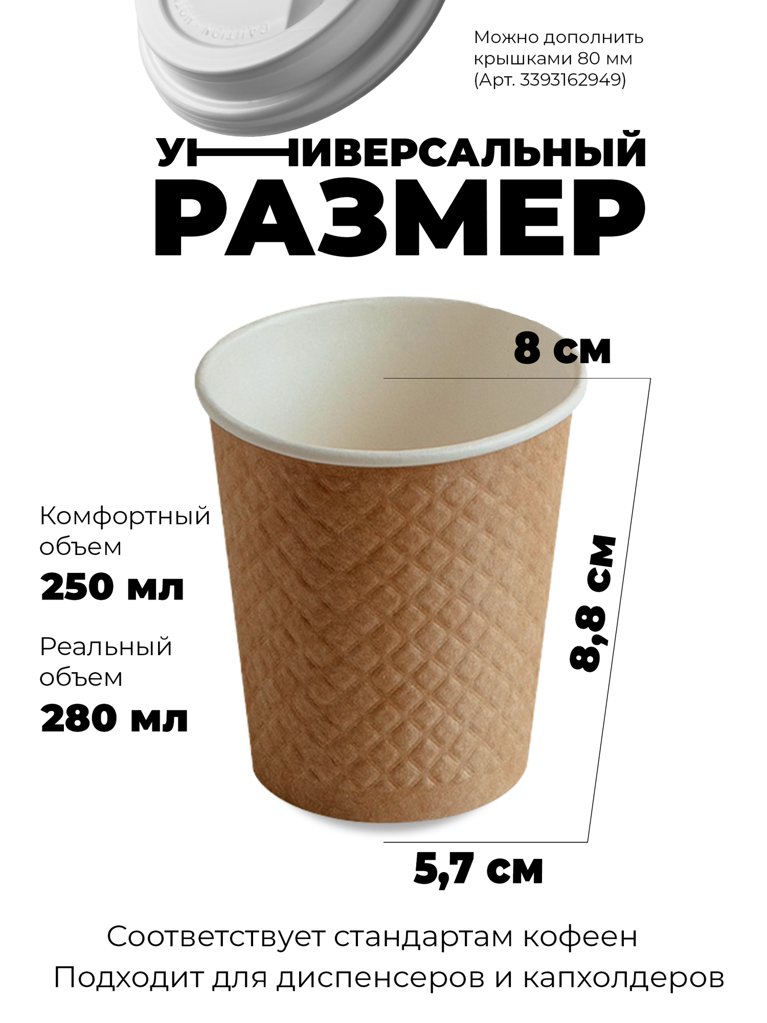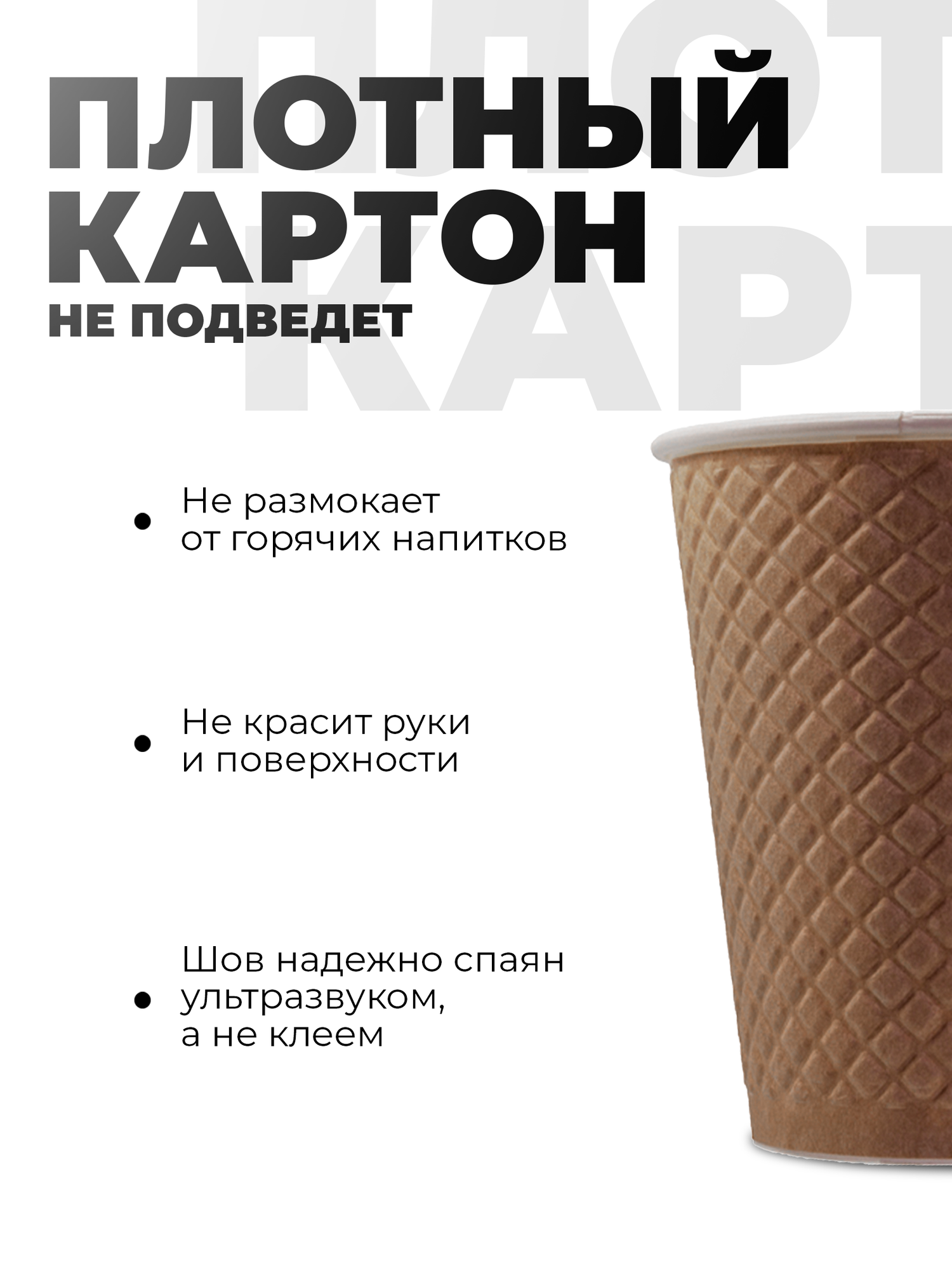 Одноразовые бумажные двухслойные стаканы Formacia, объем 300 мл, в наборе 25 шт. цвет крафт, стаканчики для кофе с вафельной тектурой