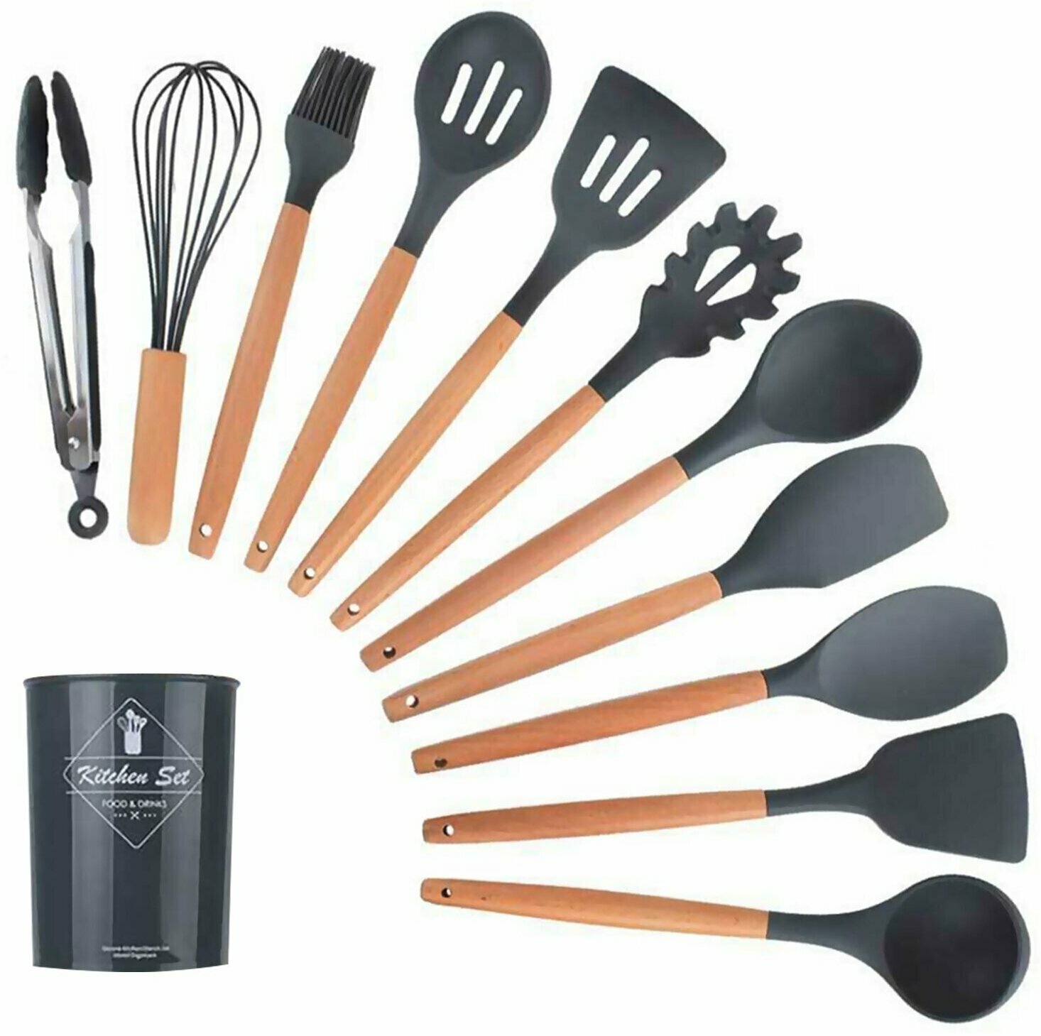 Отзывы на Кухонный набор Kitchen Set силикон и бамбук из 12 шт / цвет темно серый.
