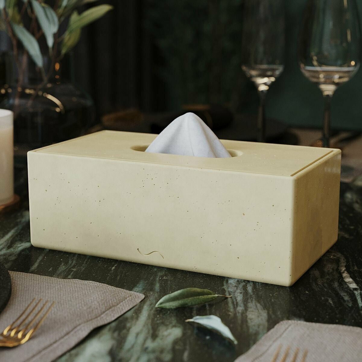 Салфетница интерьерная Helen с крышкой, 24x8.5x13 см, бетон, кремовая глянцевая информация: