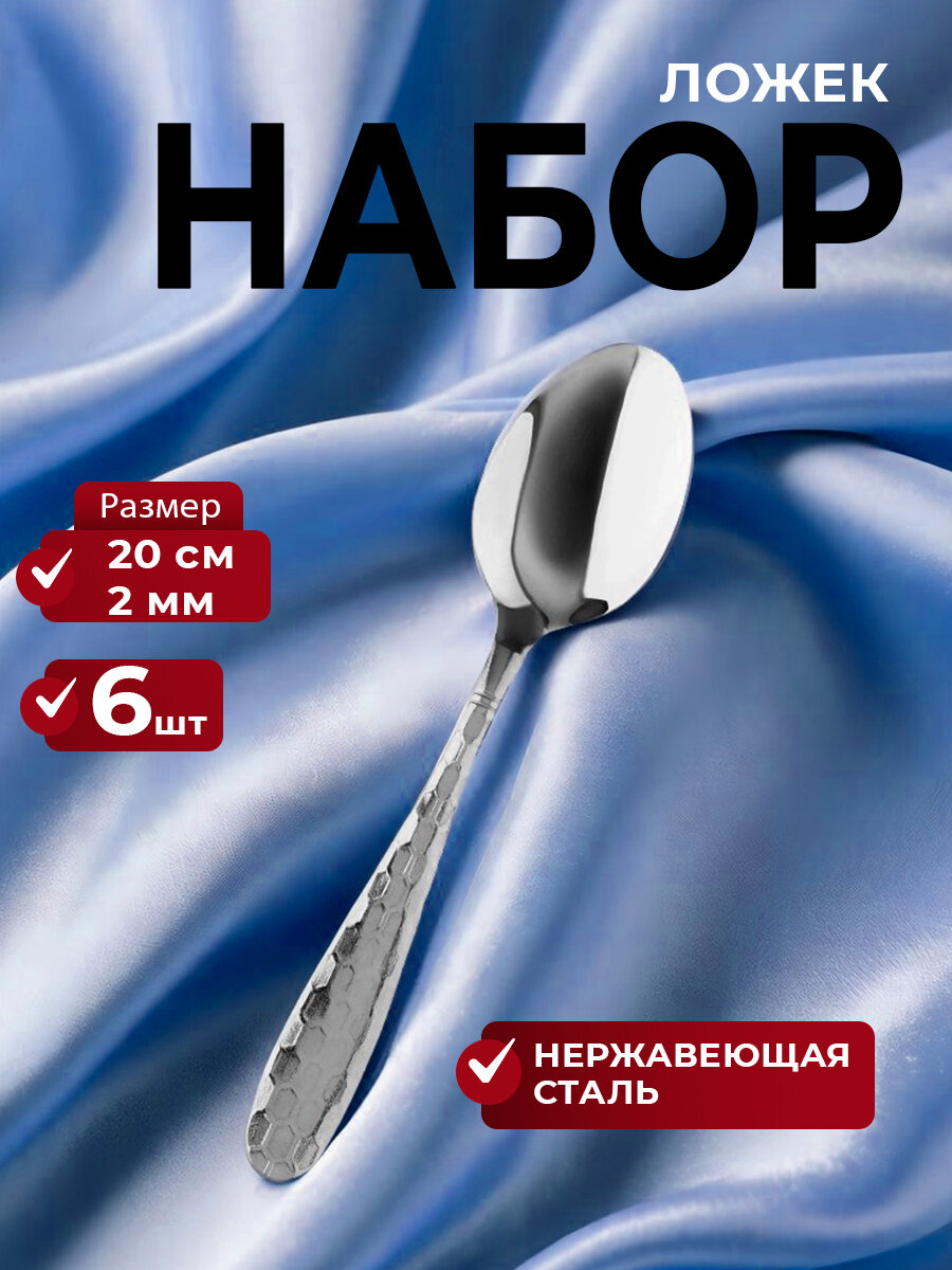 10 цен на Ложки столовые Доляна «Соты» из нержавеющей стали, h=20 см, толщина 2 мм, 6 шт, цвет серебряный