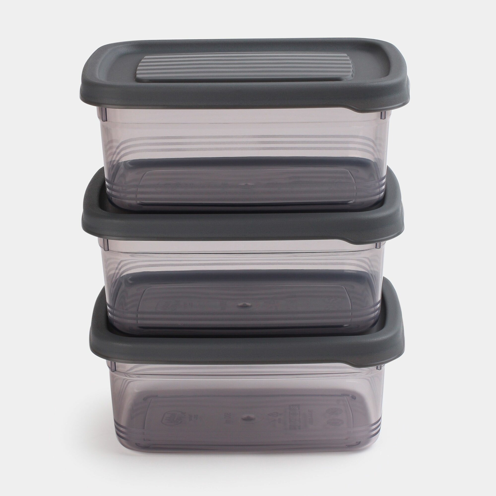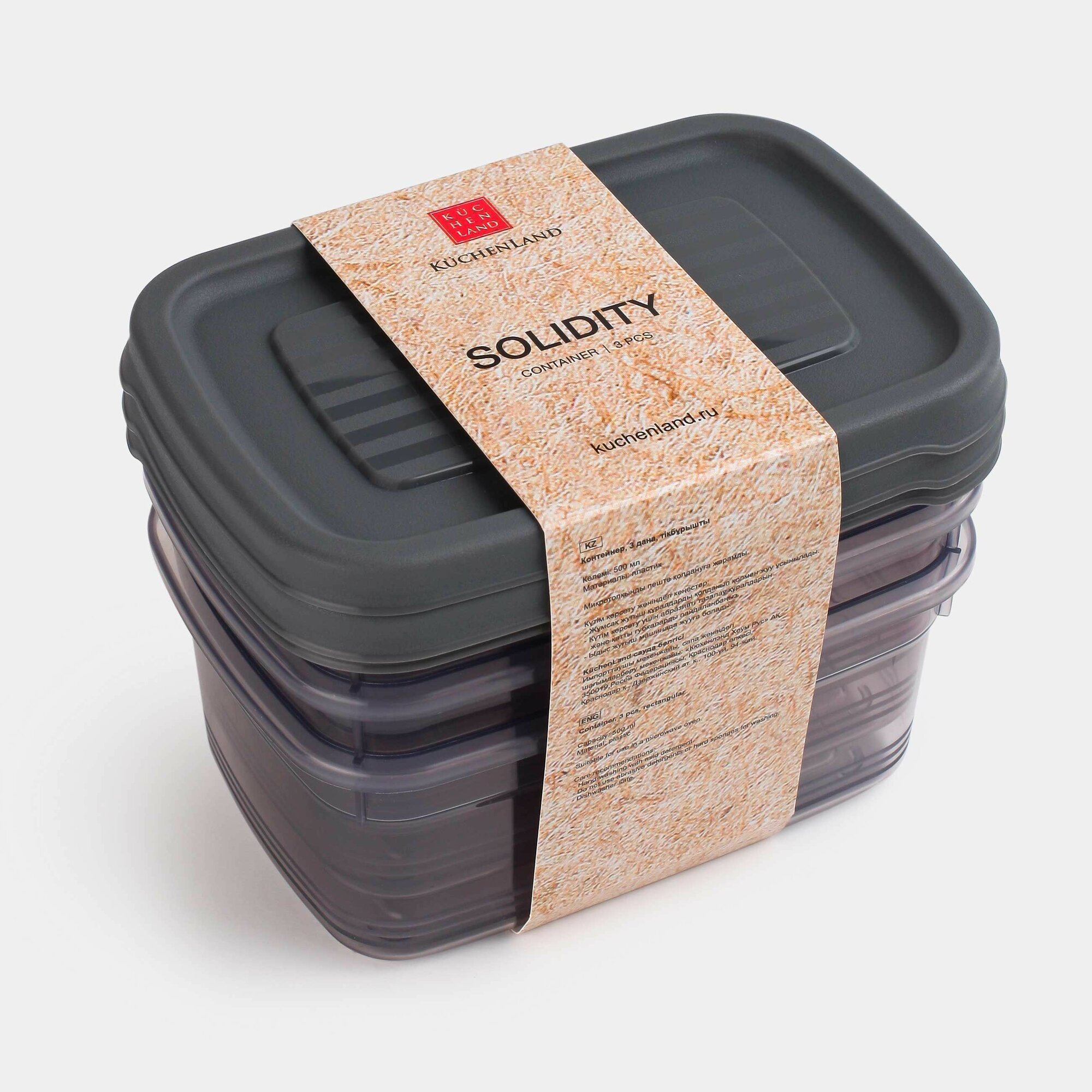 Контейнер, "Kuchenland", 500 мл, 3 шт, пластик, прямоугольный, графитовый, Solidity информация: