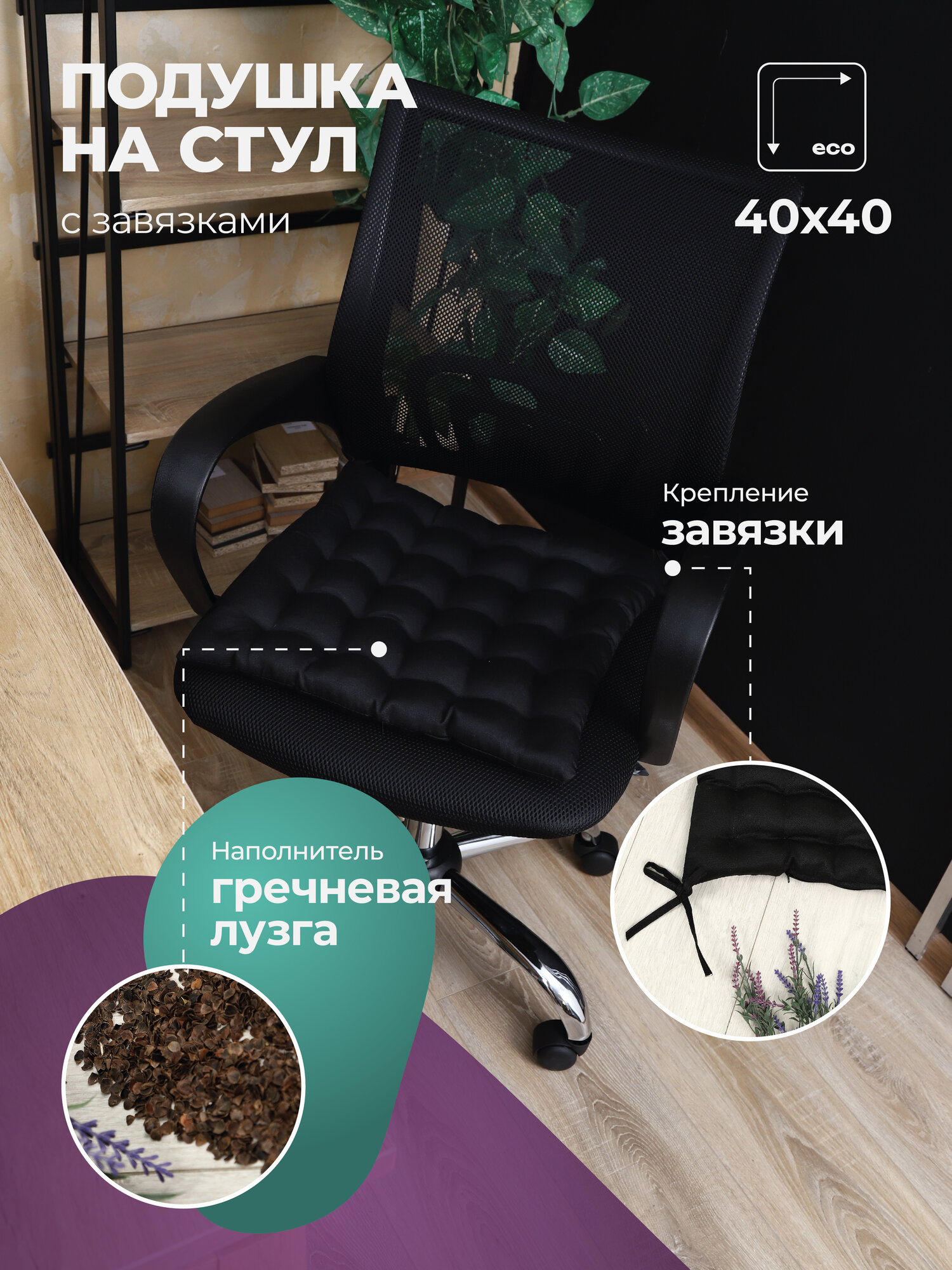 Подушка на стул Bio-Line ,ортопедическая подушка для сидения с лузгой гречихи,на завязках Bio-Line,40х40 см,черный информация: