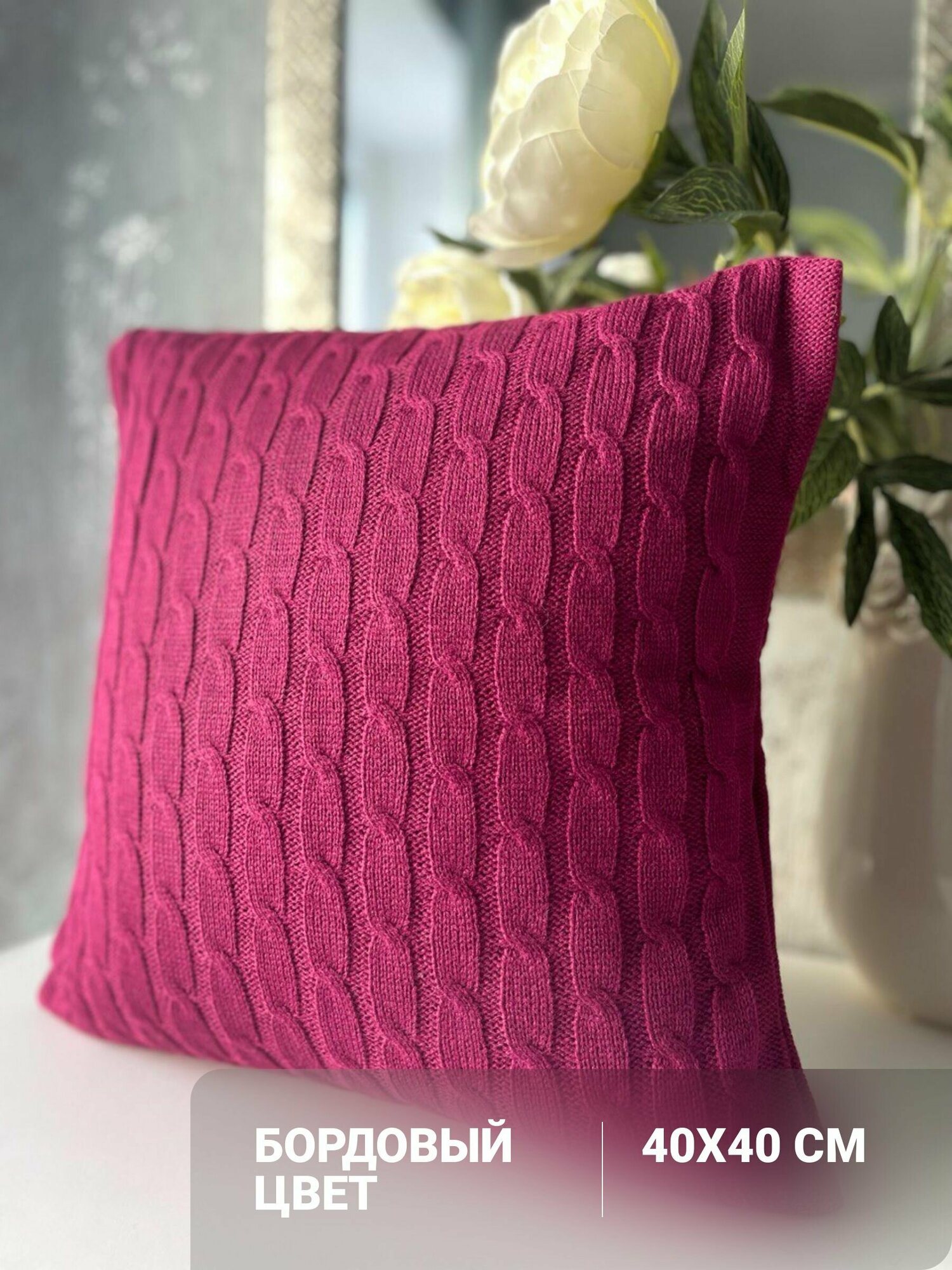 Отзывы на Наволочка декоративная на подушку, вязаная, 40Х40, цвет бордовый, 1 шт