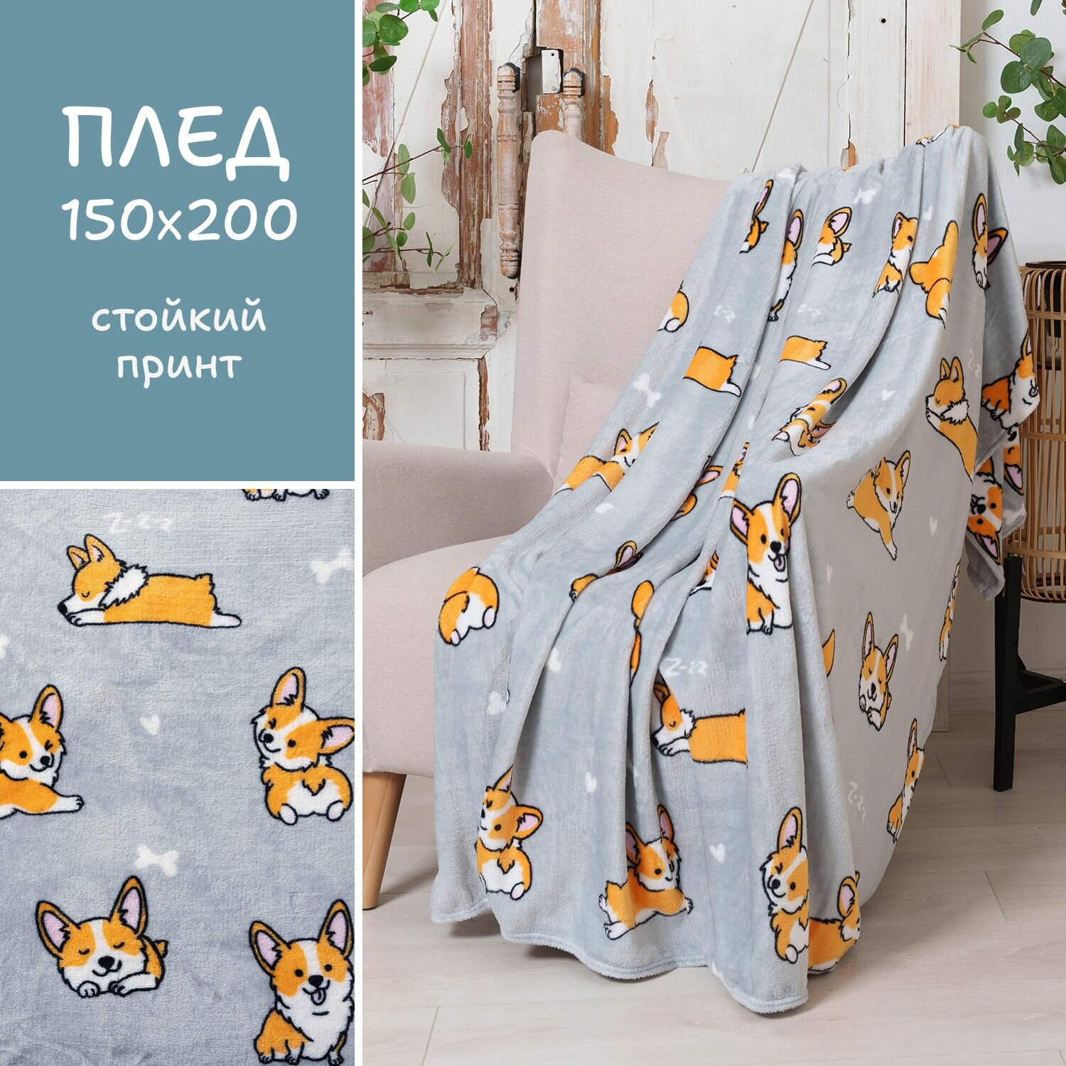 Плед велсофт 150х200 см Casa Conforte Фестиваль, корги / светло-серый информация: