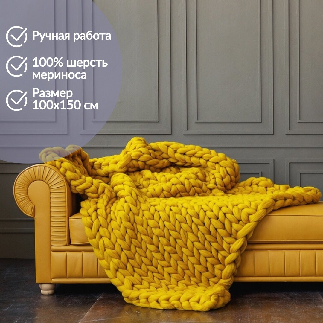 Плед крупной вязки Dollywool, 100*150 см, цвет горчица информация: